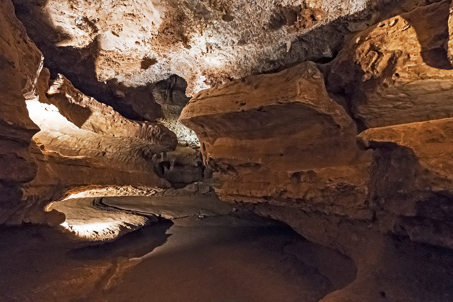 Galerie principale dont le plafond est couvert de concrétions