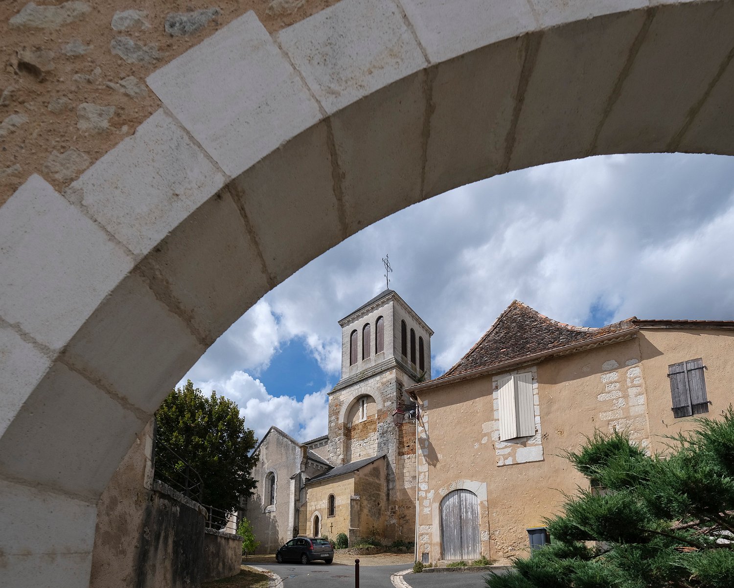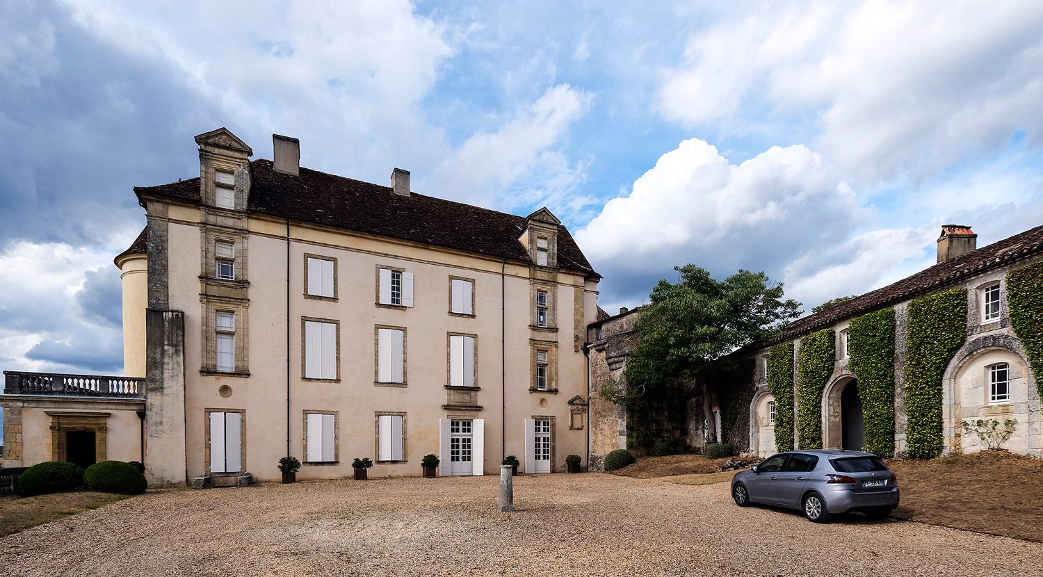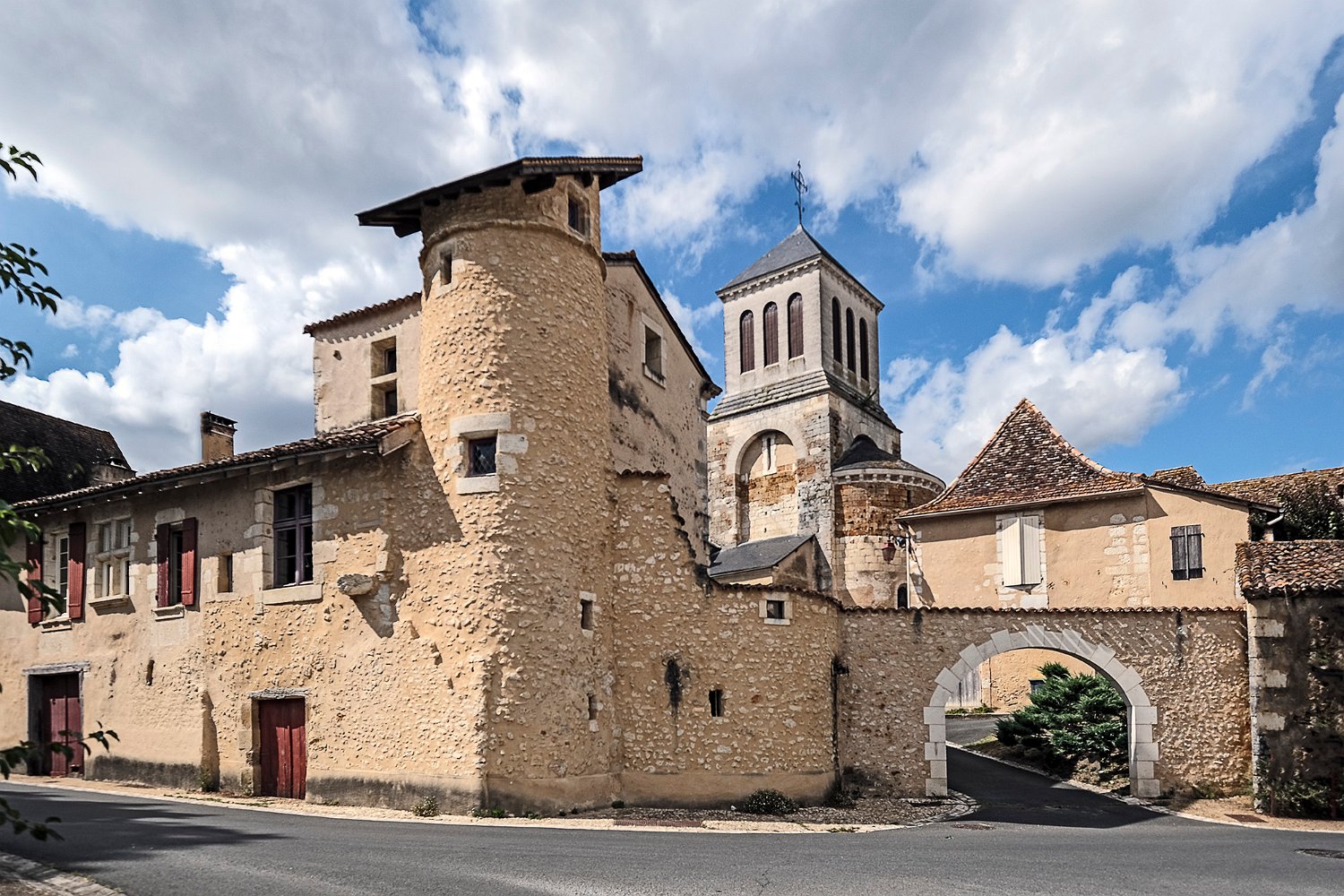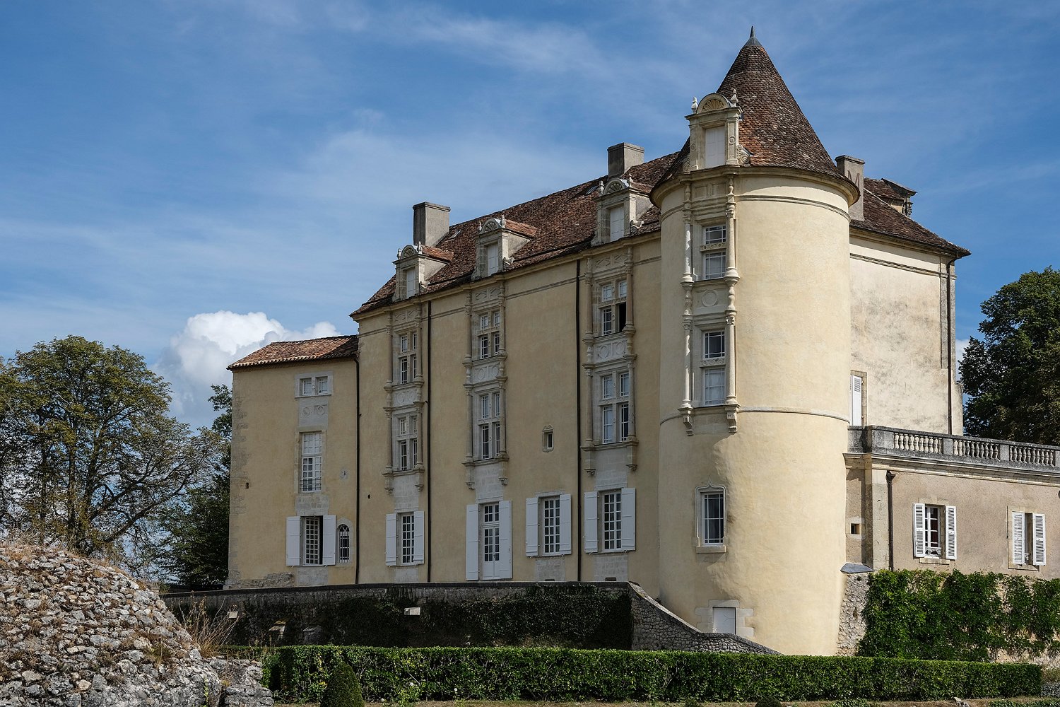 Vue du château et de ses remparts extérieurs côté nord (vers vallée de la Crempse)