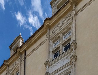 Bâtiment des communs et chapelle construits sur le rempart extérieur
