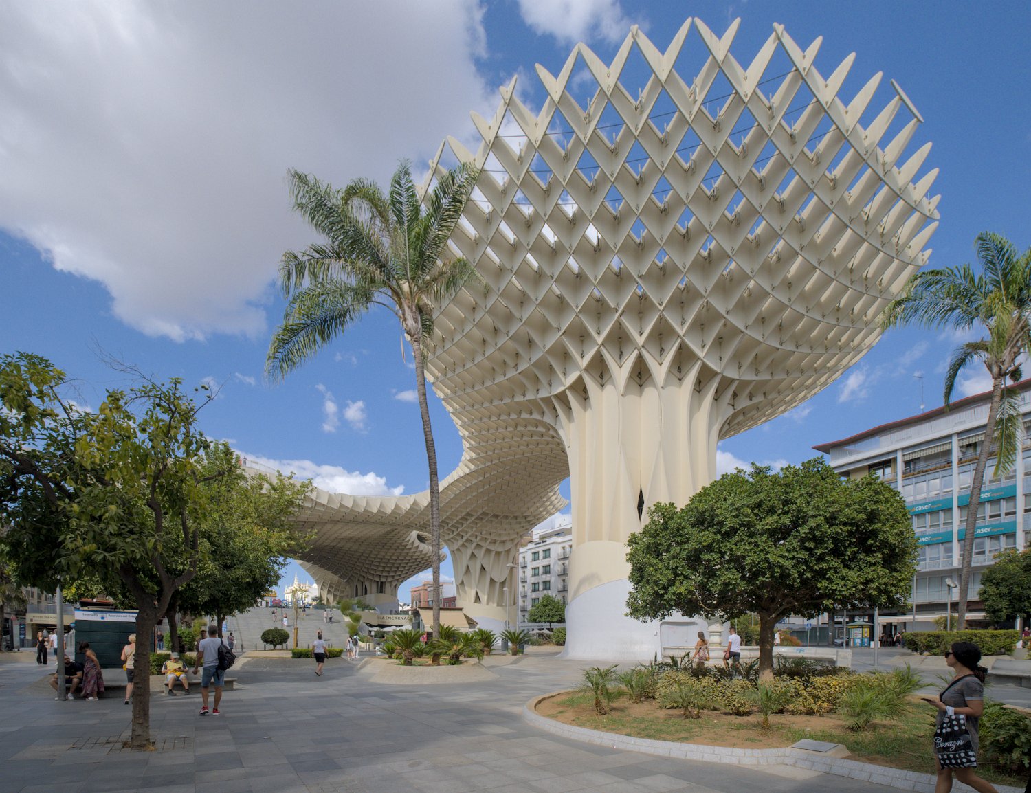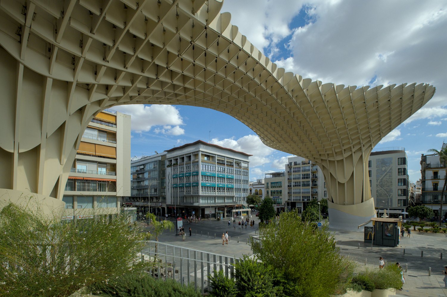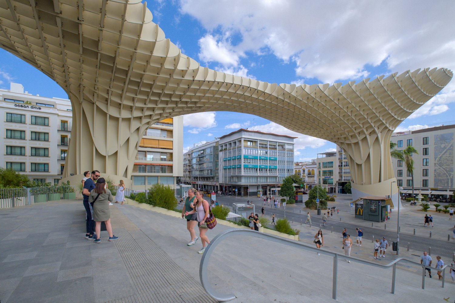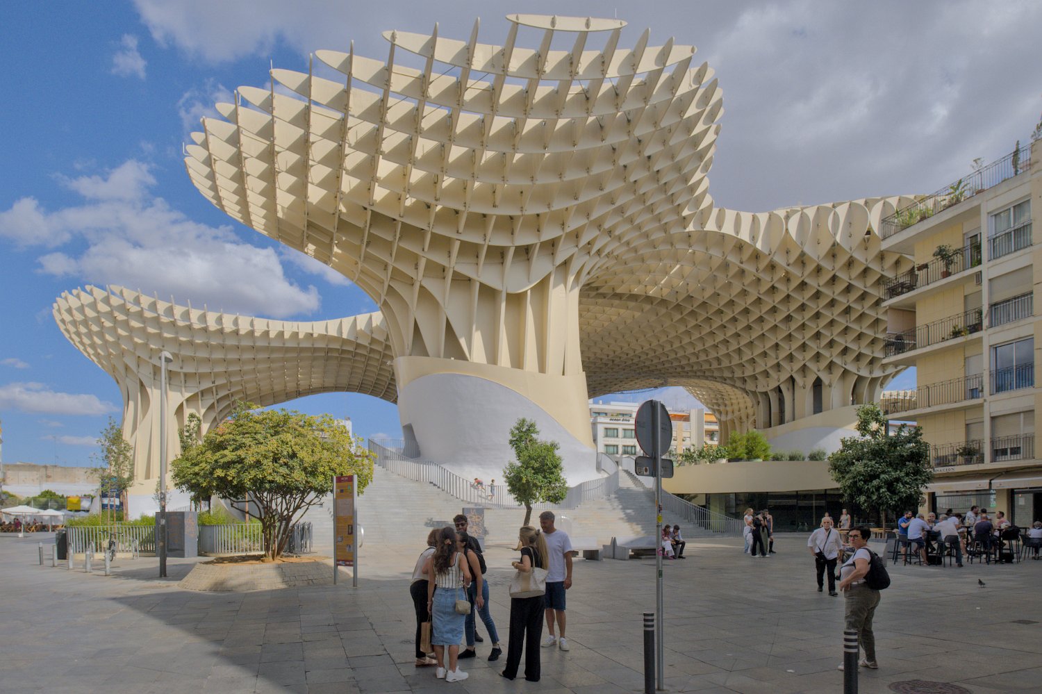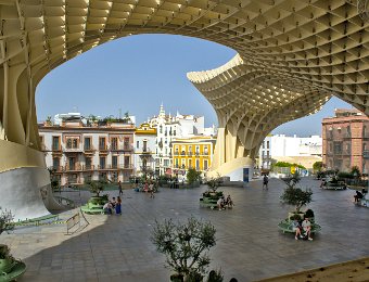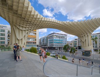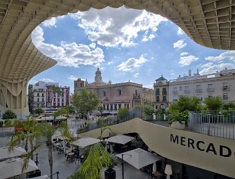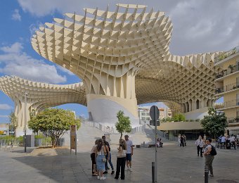 Les Setas de Sevilla, ou "Champignons de Séville", sont une structure moderne et iconique située sur la Plaza de la Encarnación. Conçue par l'architecte Jürgen Mayer, cette immense installation en bois, qui surplombe la ville, offre une vue panoramique spectaculaire tout en étant un exemple innovant d'architecture contemporaine intégrée dans le tissu urbain historique de Séville.
