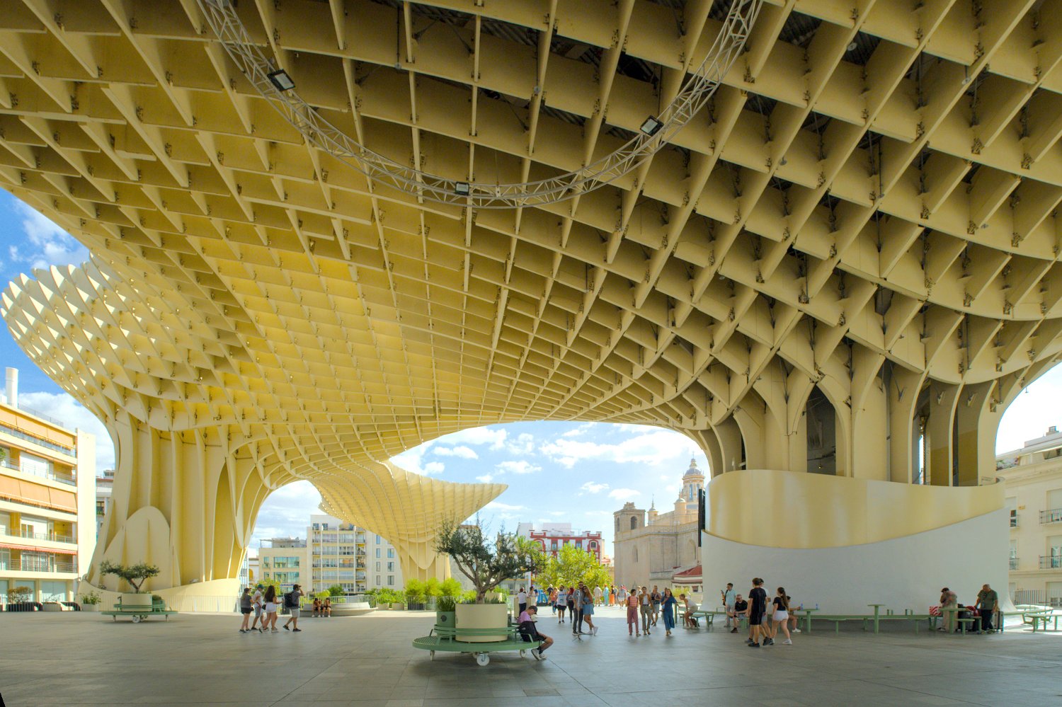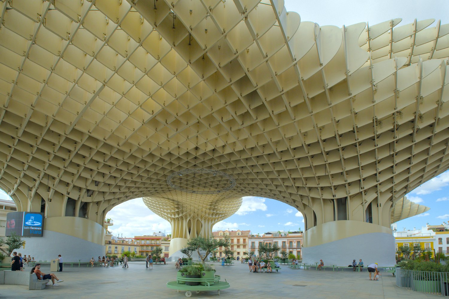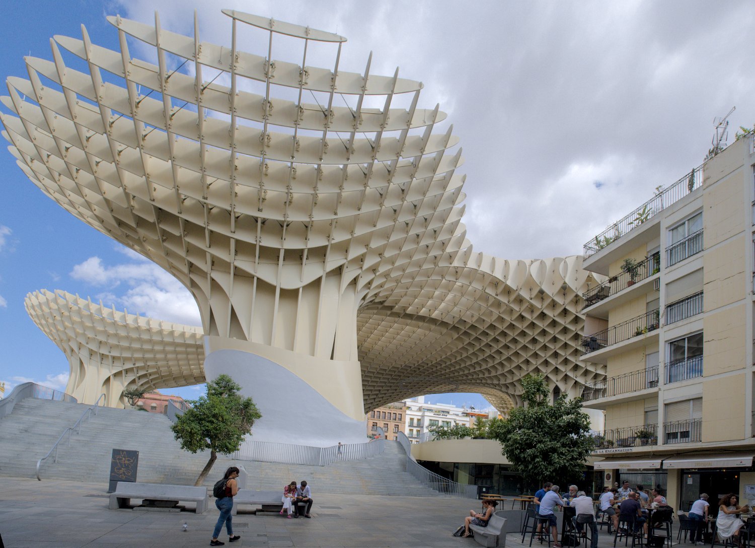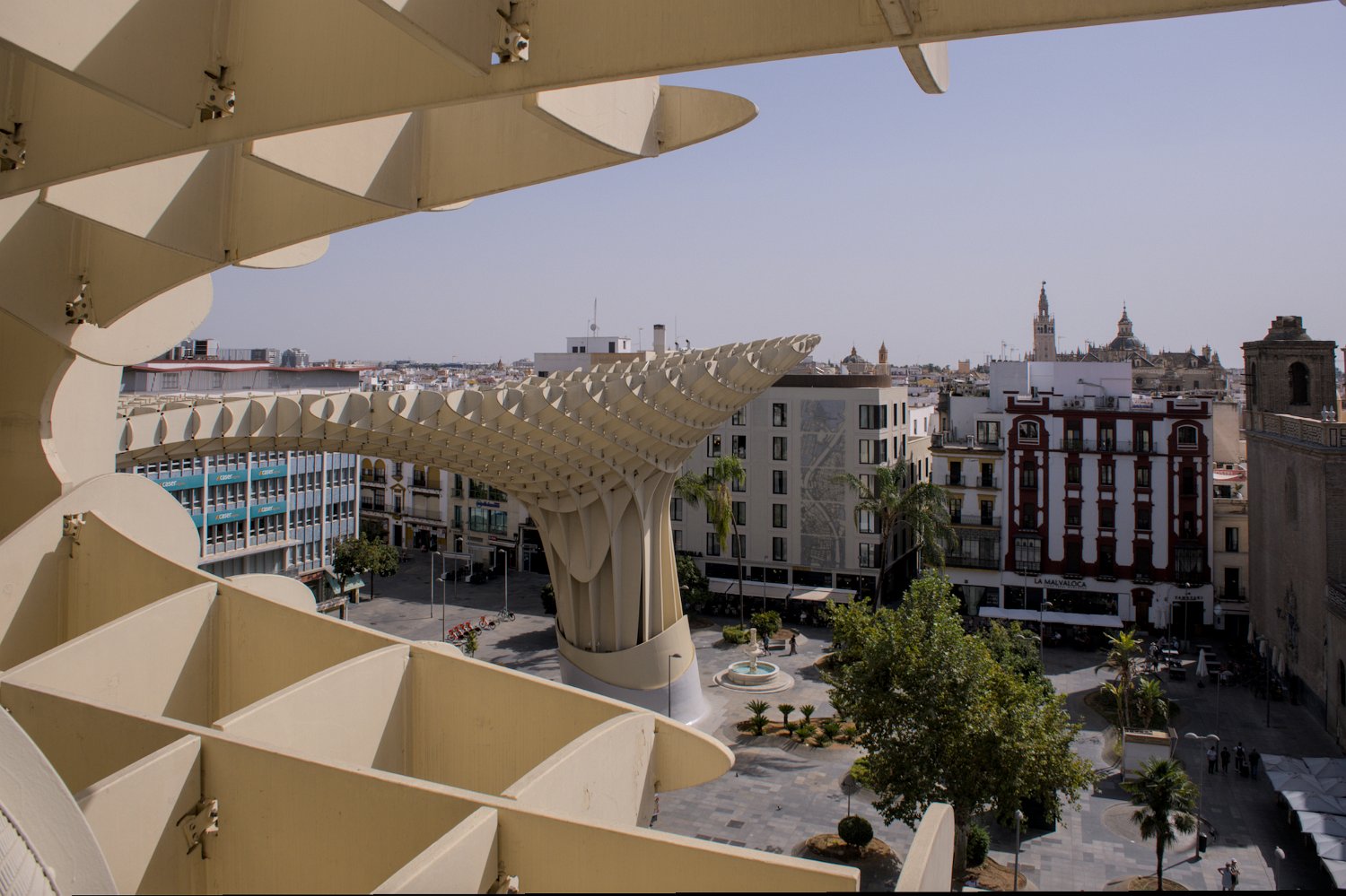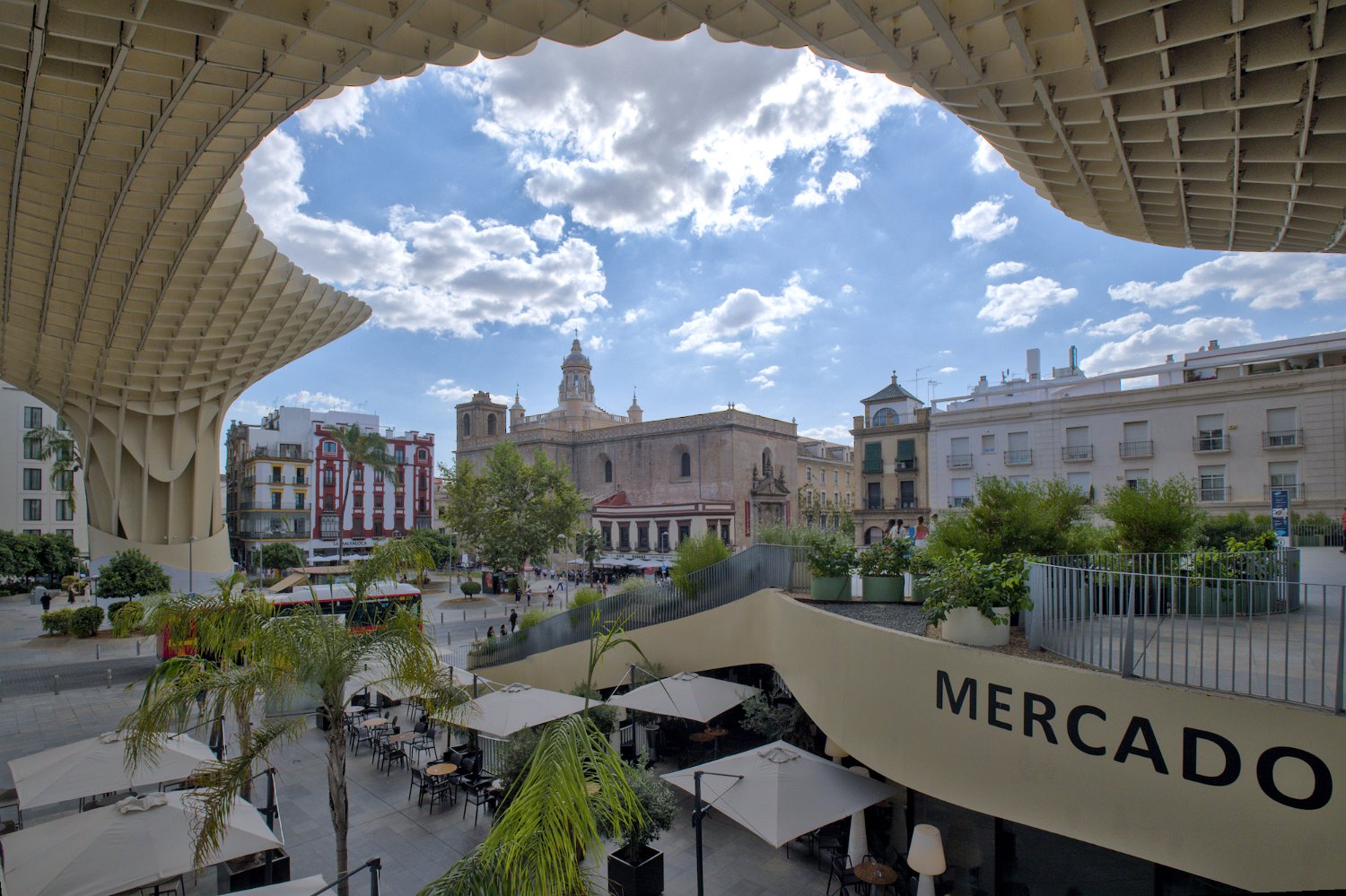 Les Setas de Sevilla, ou "Champignons de Séville", sont une structure moderne et iconique située sur la Plaza de la Encarnación. Conçue par l'architecte Jürgen Mayer, cette immense installation en bois, qui surplombe la ville, offre une vue panoramique spectaculaire tout en étant un exemple innovant d'architecture contemporaine intégrée dans le tissu urbain historique de Séville.