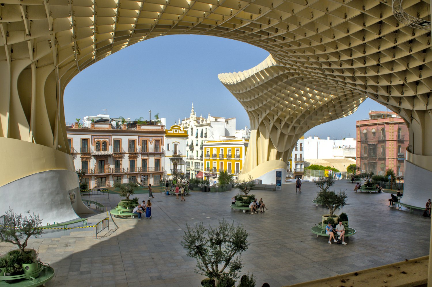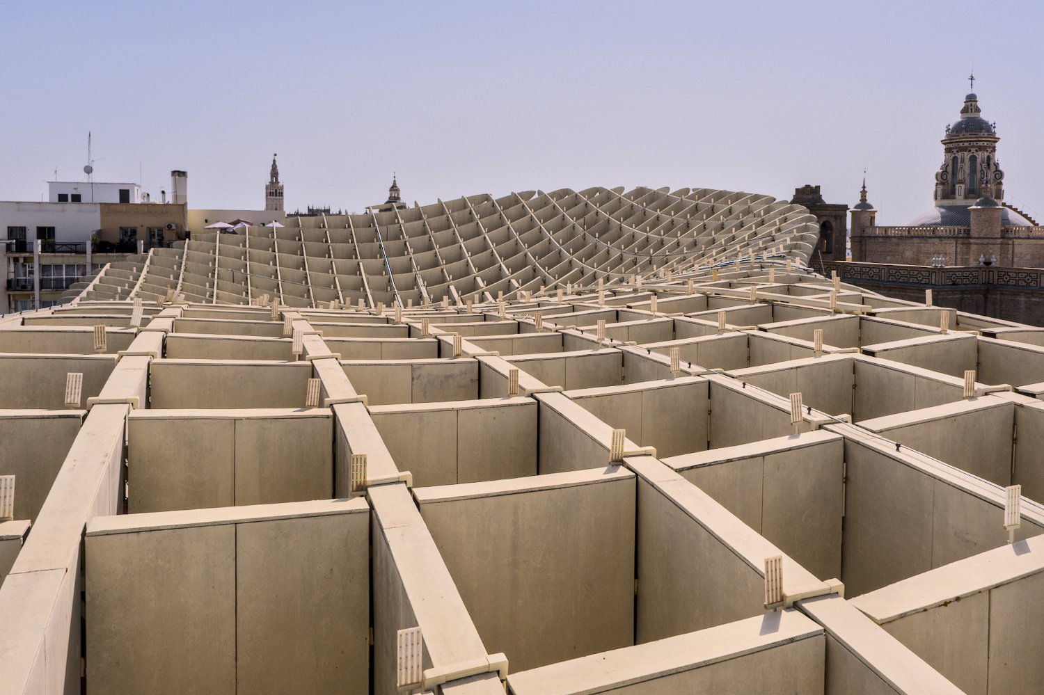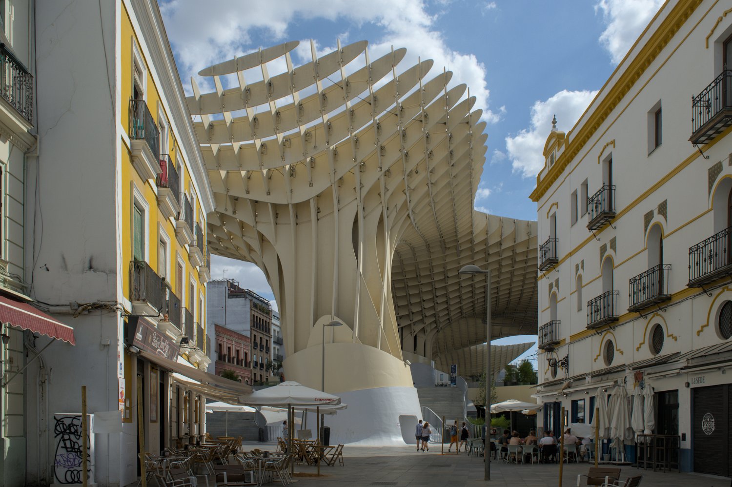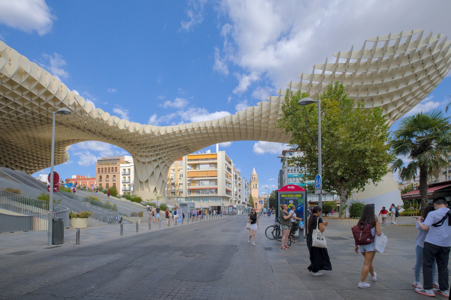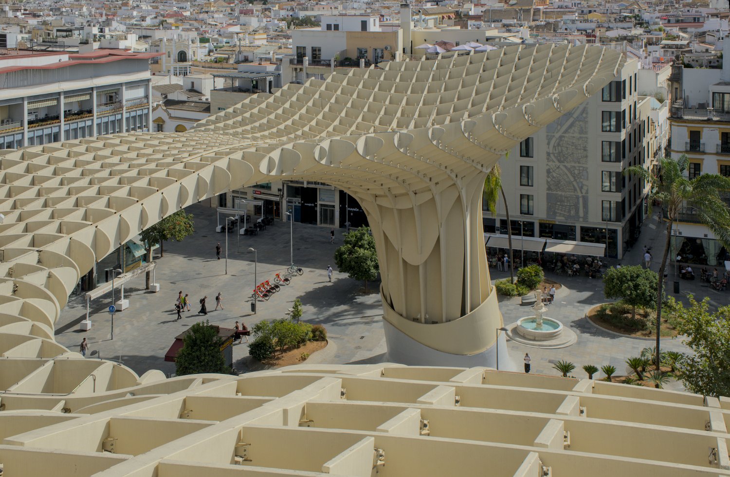 Les Setas de Sevilla, ou "Champignons de Séville", sont une structure moderne et iconique située sur la Plaza de la Encarnación. Conçue par l'architecte Jürgen Mayer, cette immense installation en bois, qui surplombe la ville, offre une vue panoramique spectaculaire tout en étant un exemple innovant d'architecture contemporaine intégrée dans le tissu urbain historique de Séville.