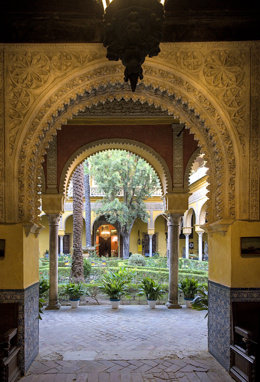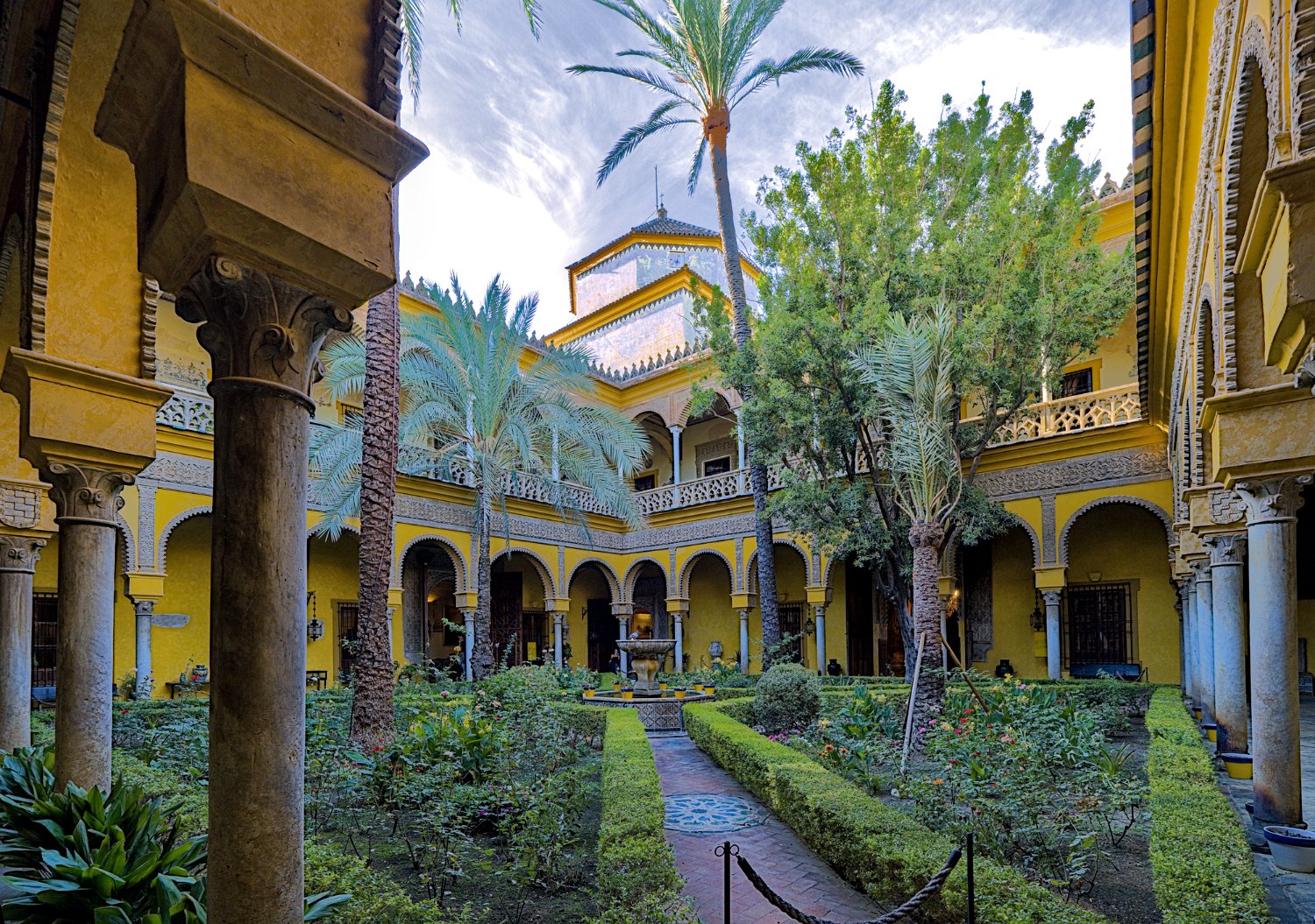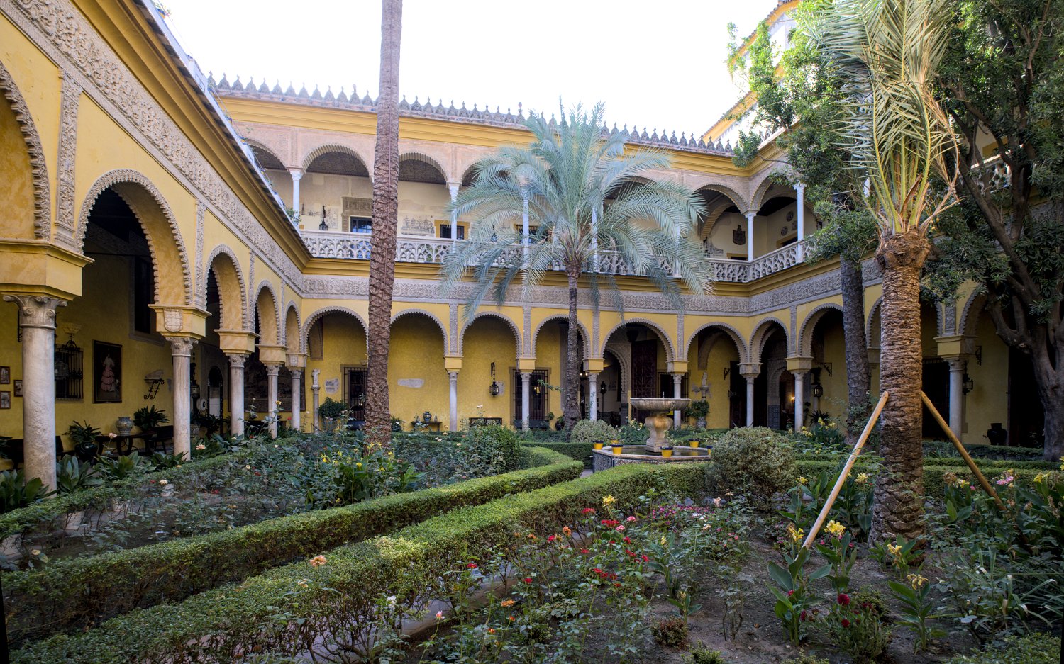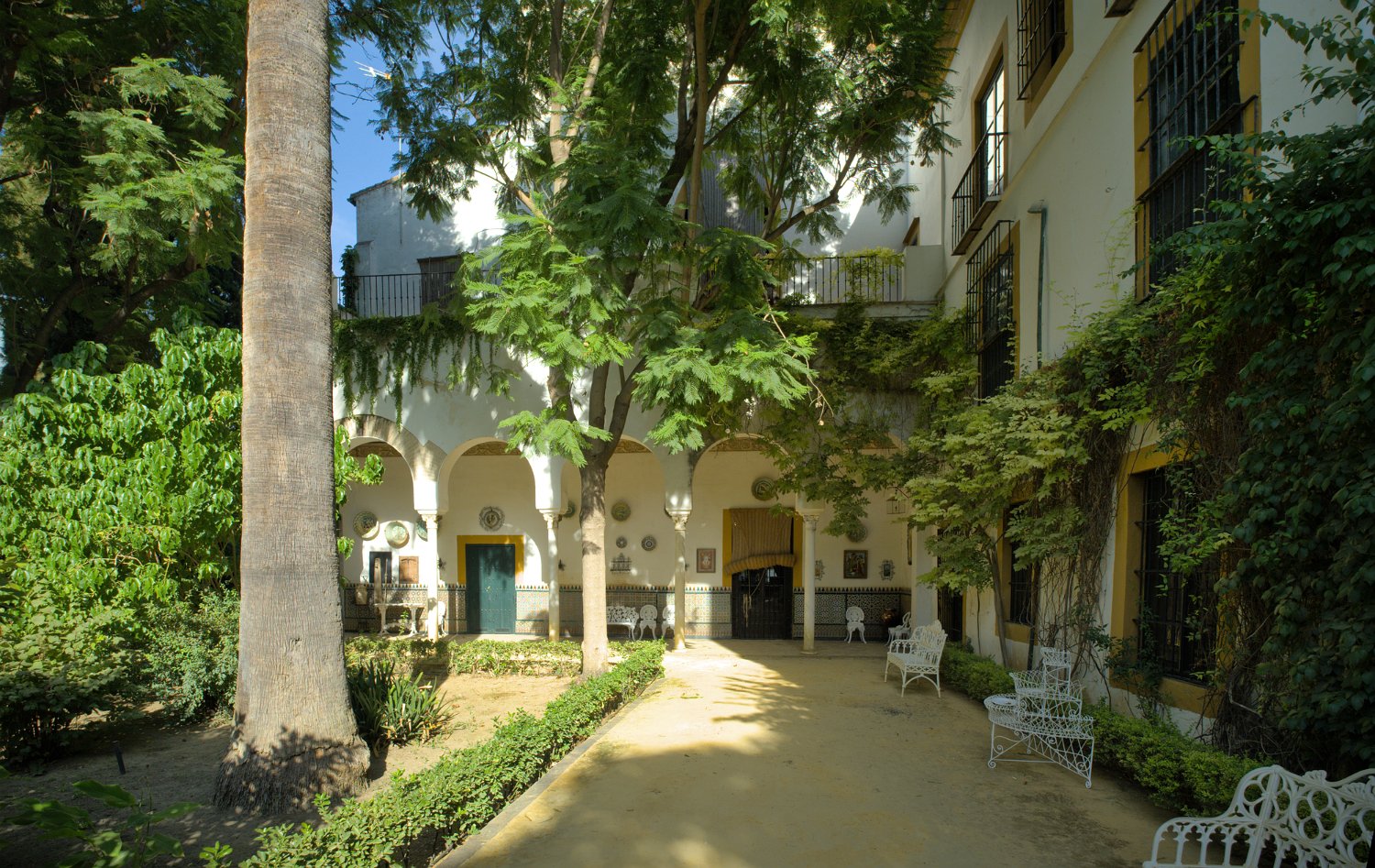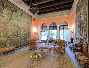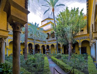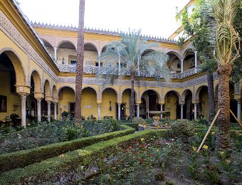 Le Palais de las Dueñas est un splendide exemple de palais andalou, alliant des éléments de l'architecture gothique, de la Renaissance et du style mudéjar. Situé au cœur de Séville, il se distingue par ses magnifiques cours intérieures, ses jardins luxuriants et ses salons richement décorés, qui reflètent l'élégance et l'histoire de la noblesse sévillane.