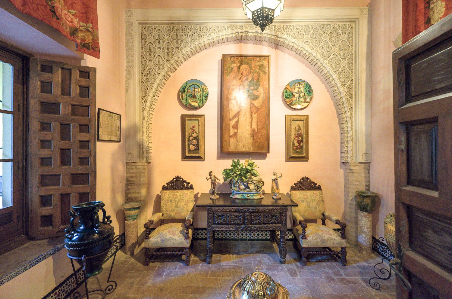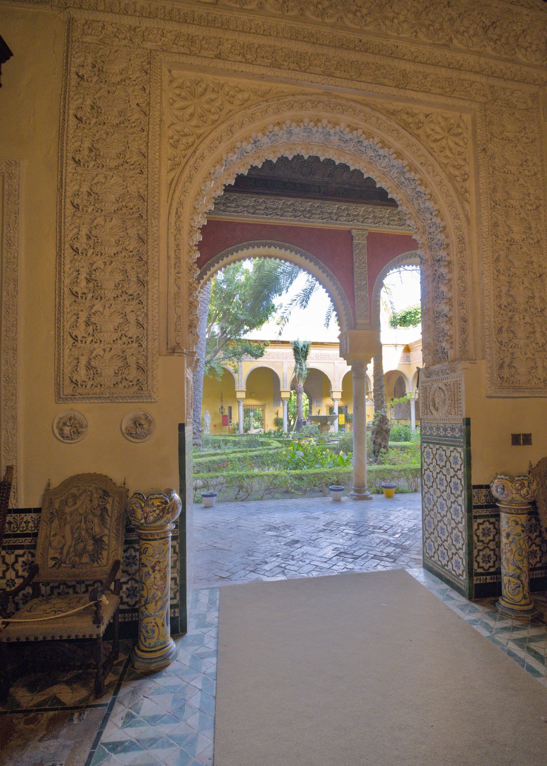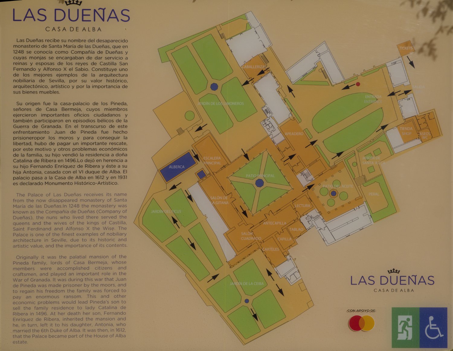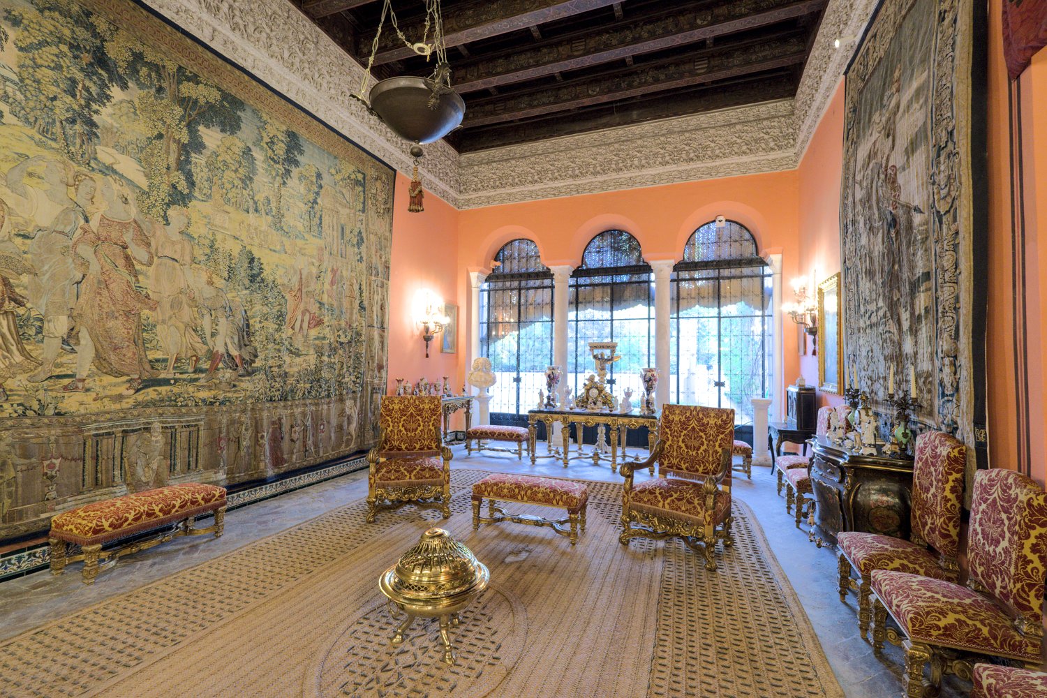 Le Palais de las Dueñas est un splendide exemple de palais andalou, alliant des éléments de l'architecture gothique, de la Renaissance et du style mudéjar. Situé au cœur de Séville, il se distingue par ses magnifiques cours intérieures, ses jardins luxuriants et ses salons richement décorés, qui reflètent l'élégance et l'histoire de la noblesse sévillane.
