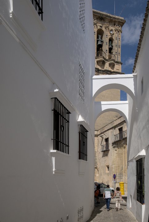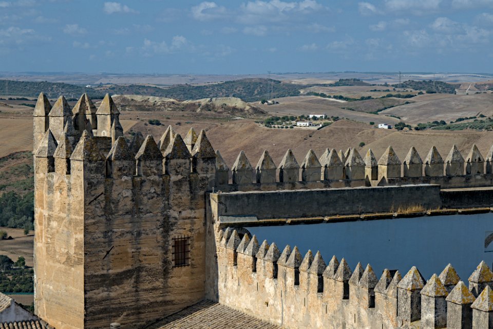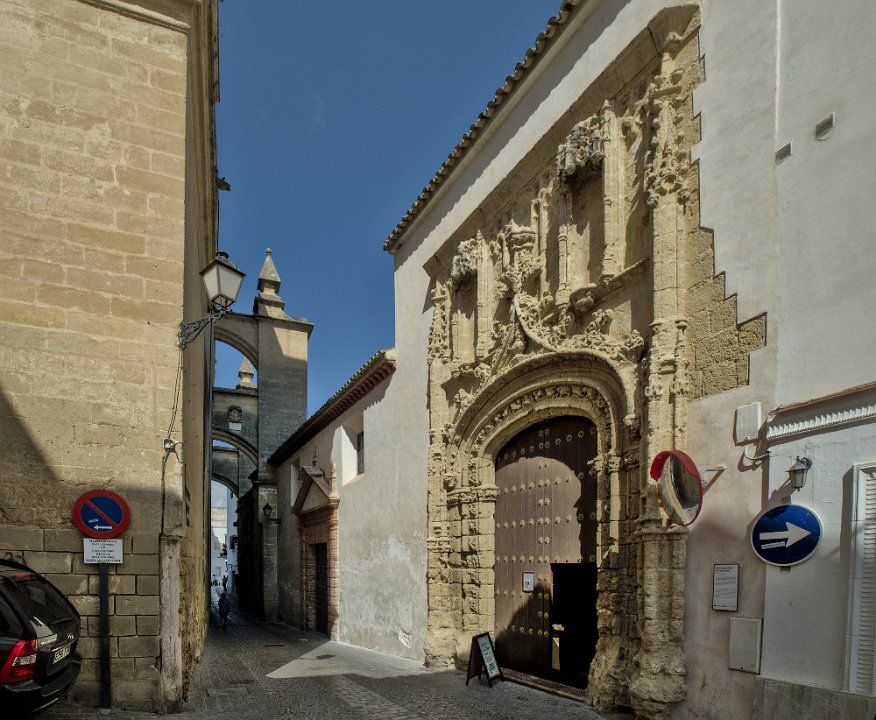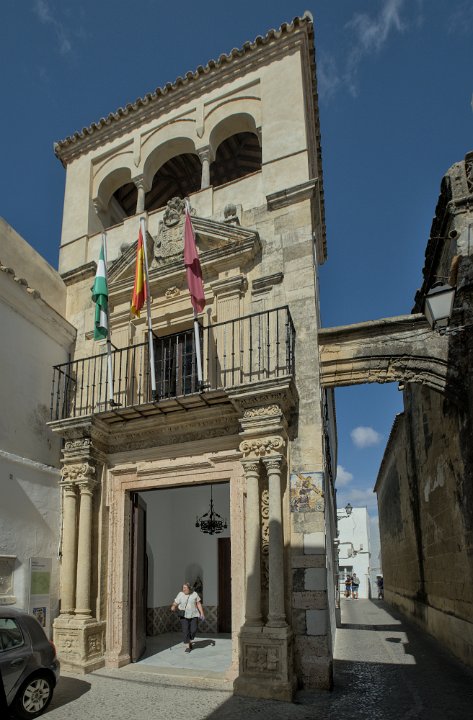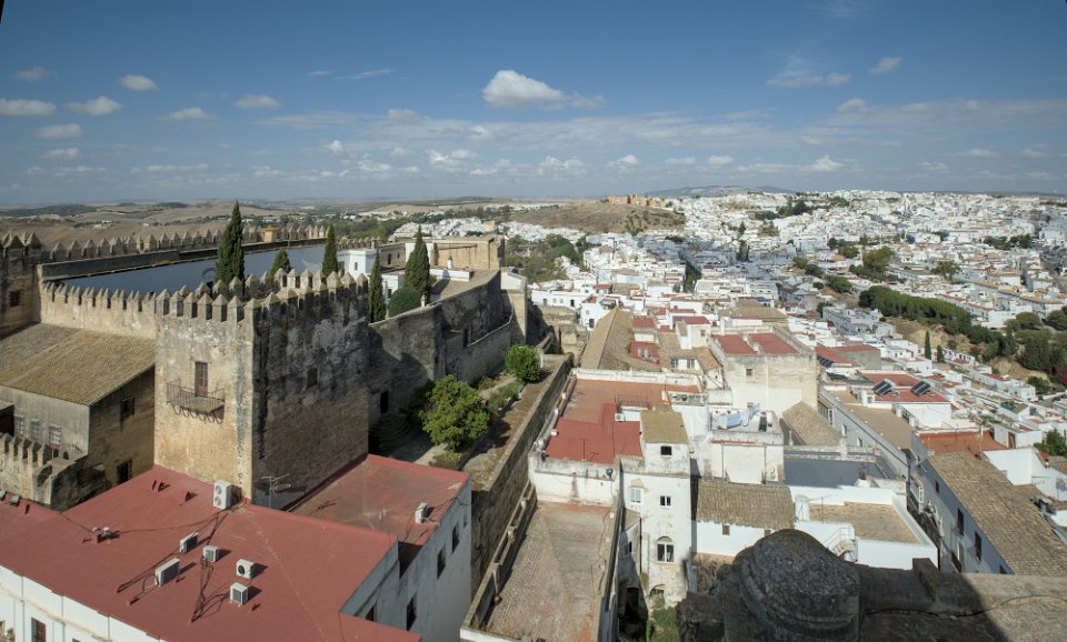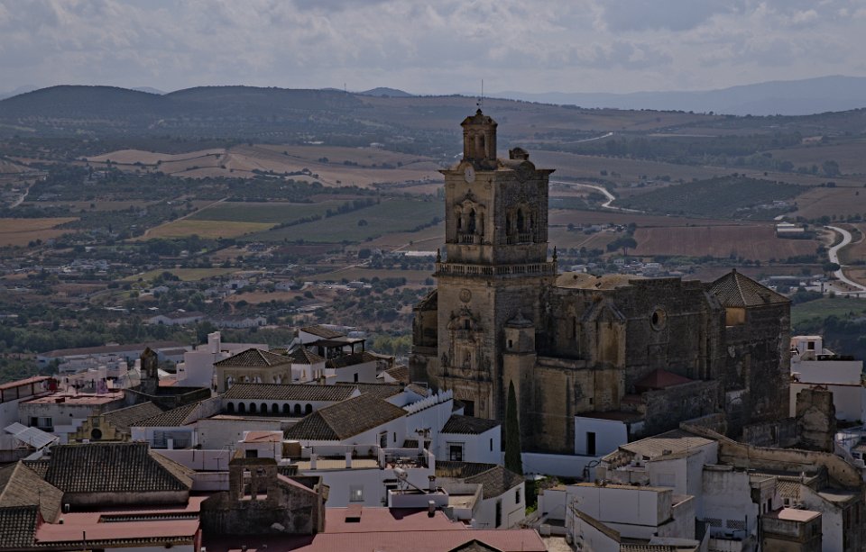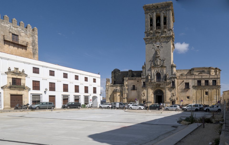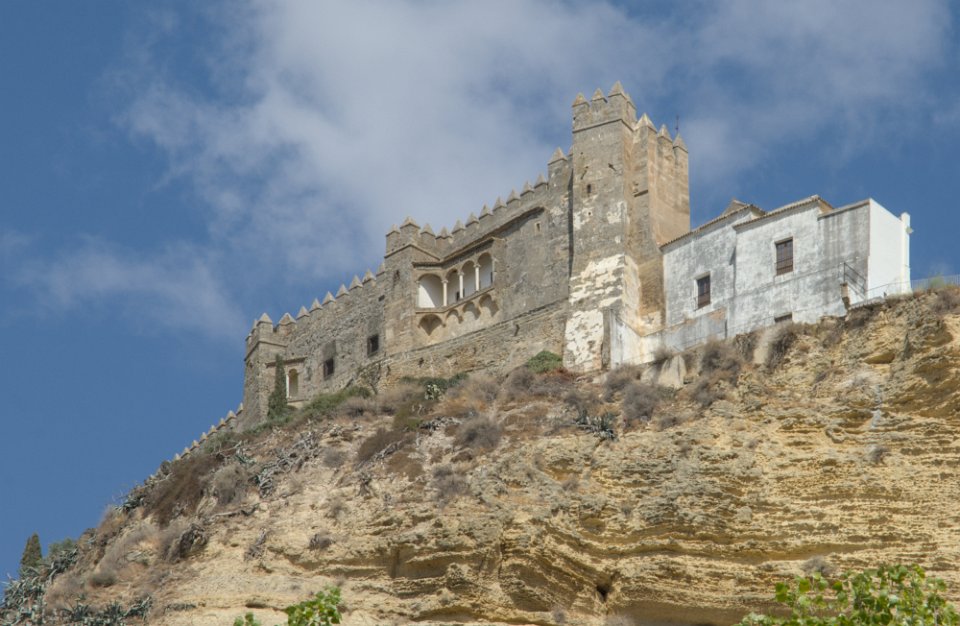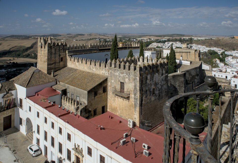 Vue sur la ville et le palais des Ducs Castillo de los Duques de Arcos  ancienne forteresse militaire, bâtie au XIème siècle, de la période musulmane. Castillo de los Duques de Arcos Basilique de Santa Maria de Asuncion  C'est l'église la plus ancienne d'Arcos. Ses premières pierres, qui datent des XIIIe et XIVe siècles, ont été construites sur les vestiges d'une mosquée arabe.  Sa tour néoclassique en est la partie la plus récente. La façade principale est de style gothique plateresque Basilique de Santa Maria de Asuncion