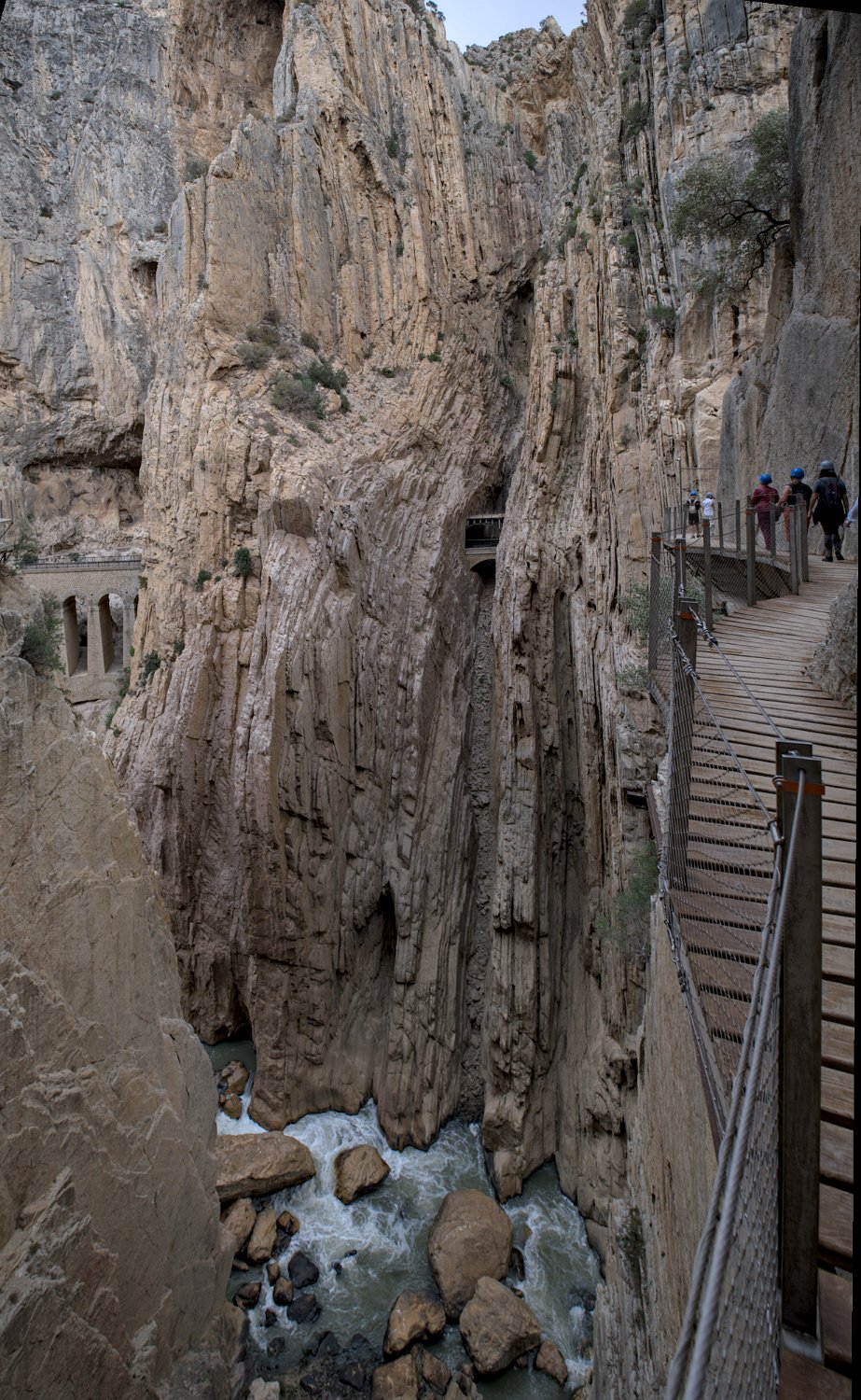 Le canyon à un endroit particulièrment étroit avec la passerelle et la voie ferrée