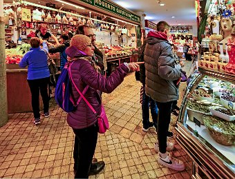 Le bâtiment abrite de nombreux commerces, dont la FNAC et un marché populaire de produits alimentaires