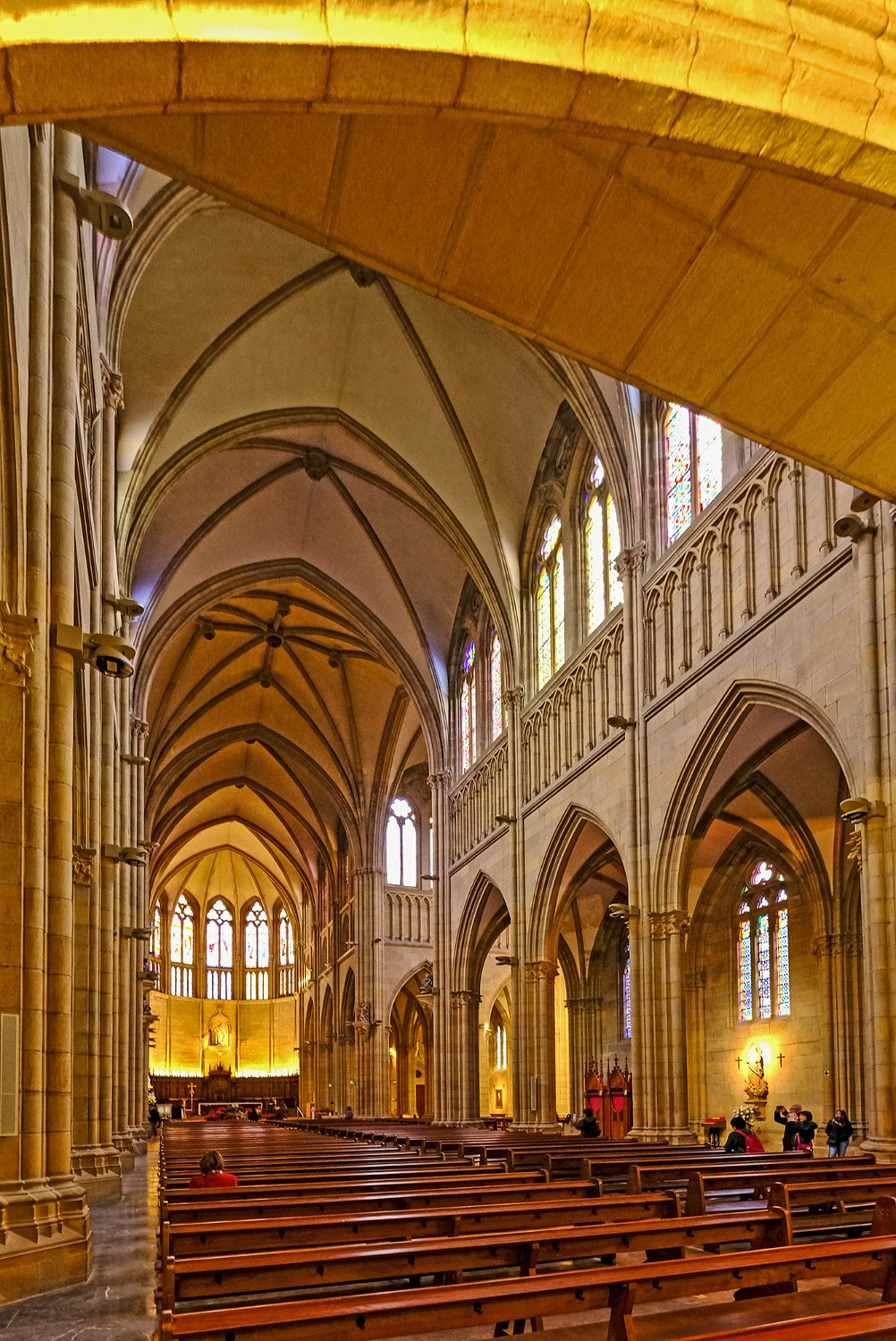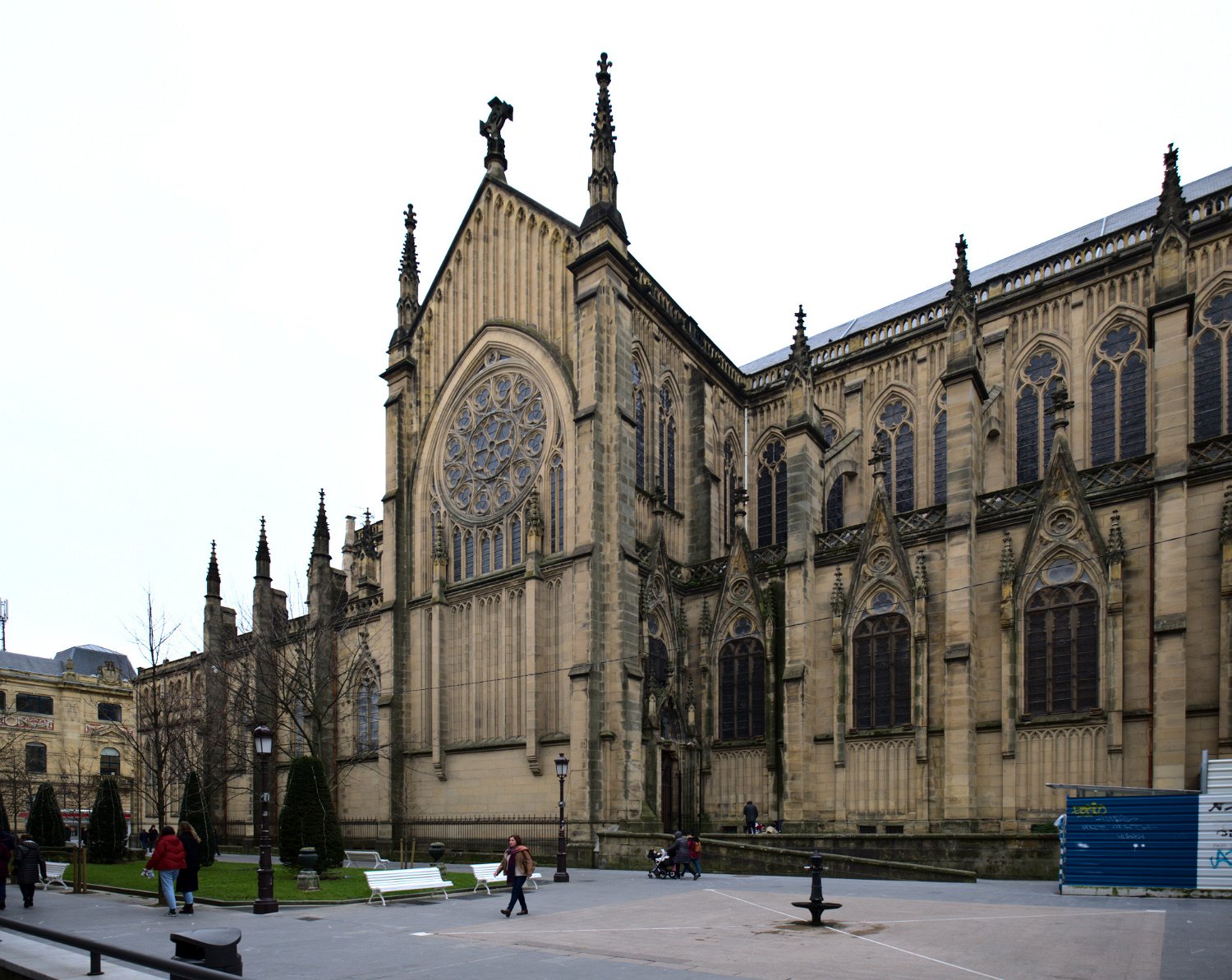 Sa construction s'est achevée en 1897 après 9 ans de travaux. D'abord église paroissiale, elle est devenue cathédrale lors de la création du diocèse de San Sebastiàn en 1949. C'est un édifice néo gothique qui s'inspire de l'architecture de la cathédrale de Cologne.