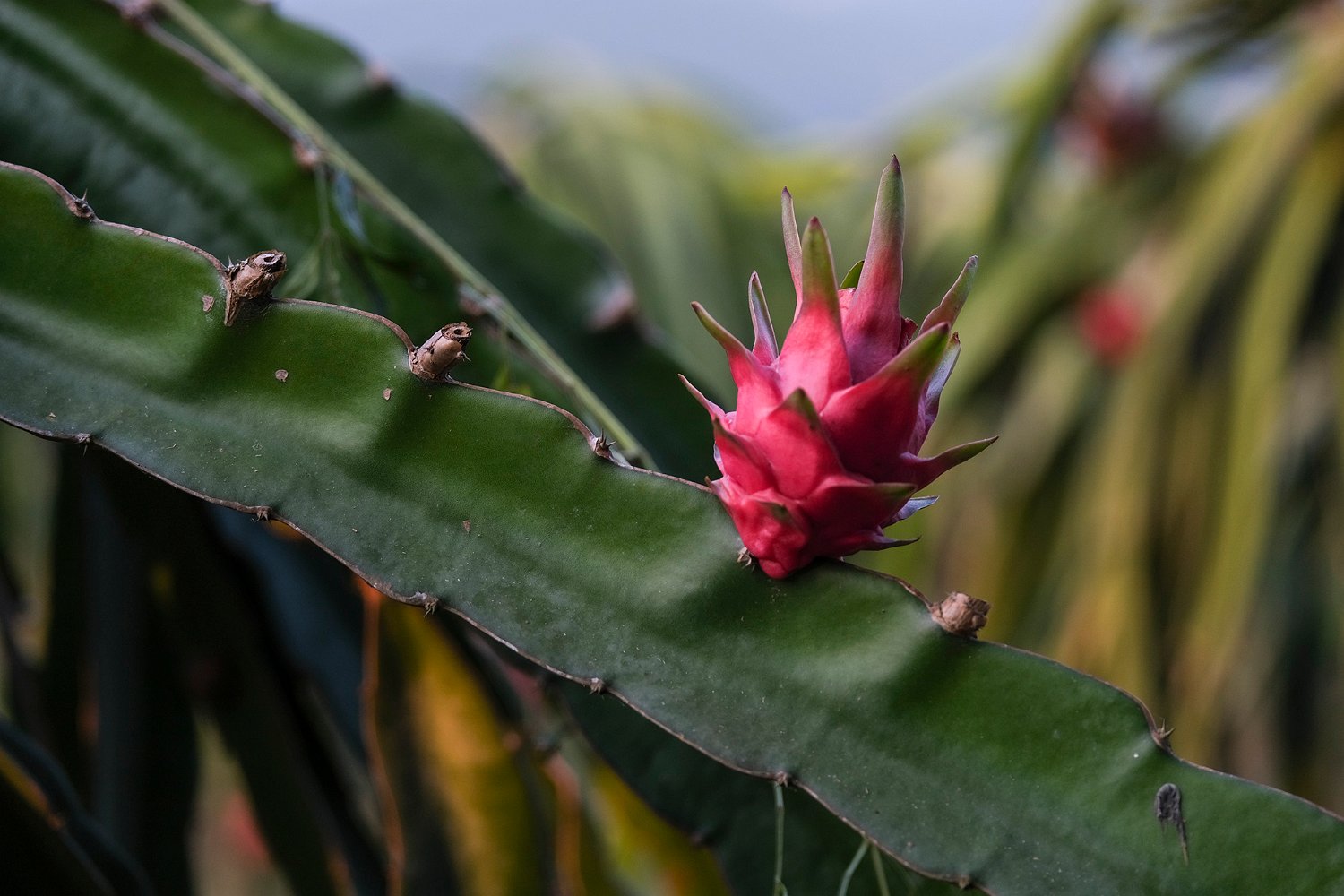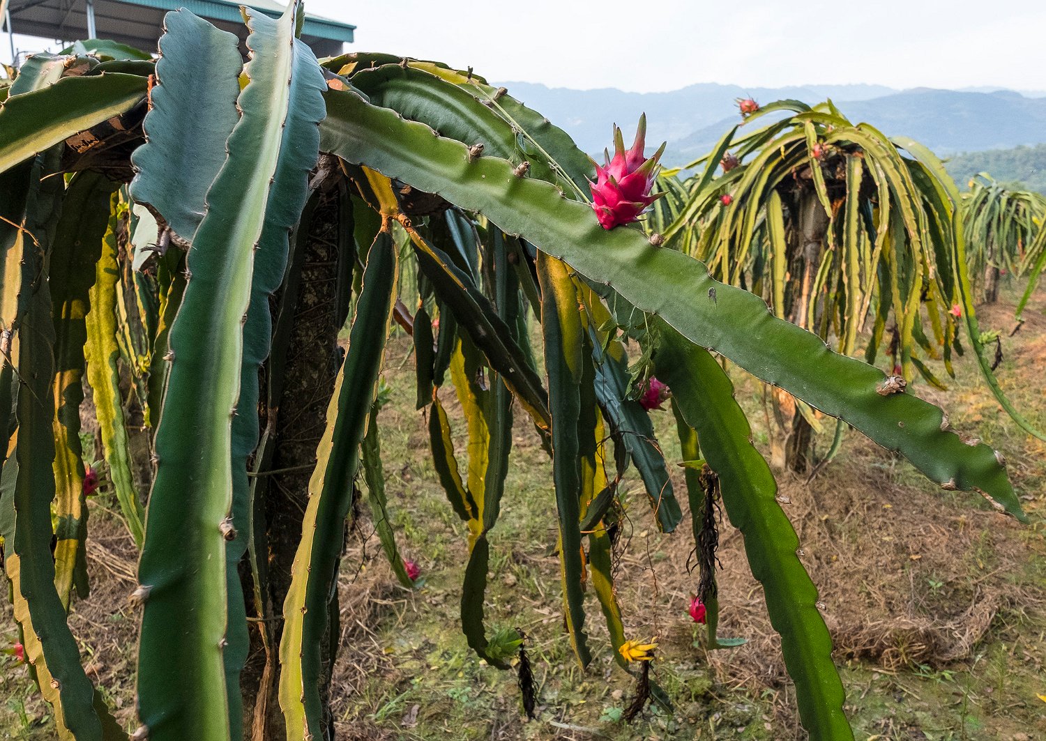 Verger de fruits du dragon  Le pitaya ou fruit du dragon est le fruit de différentes espèces de cactus