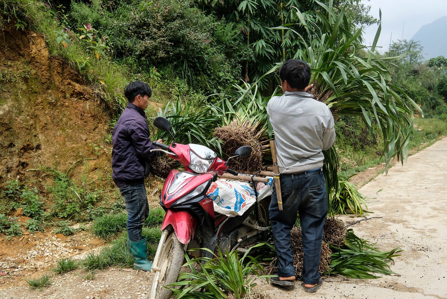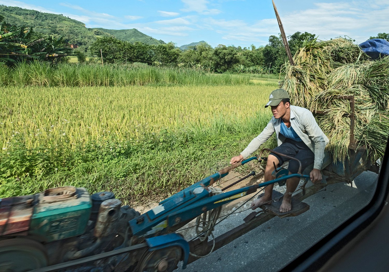 Transport du riz destiné au battage