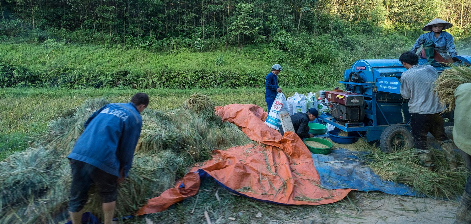 Battage mécanique du riz