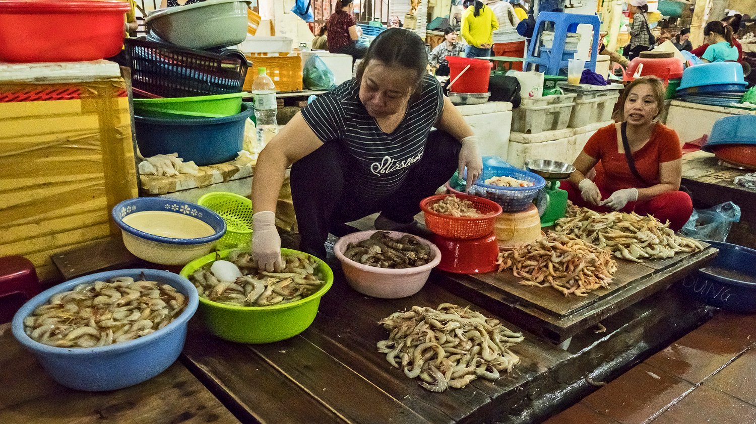 32Produits de la mer au marché de Cat Ba (crevettes)