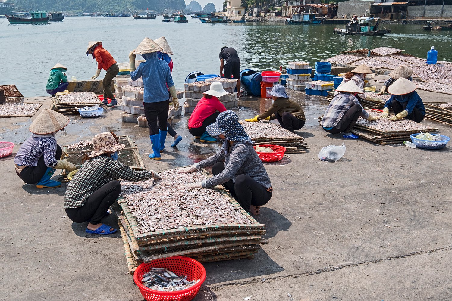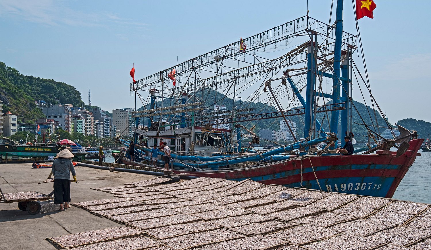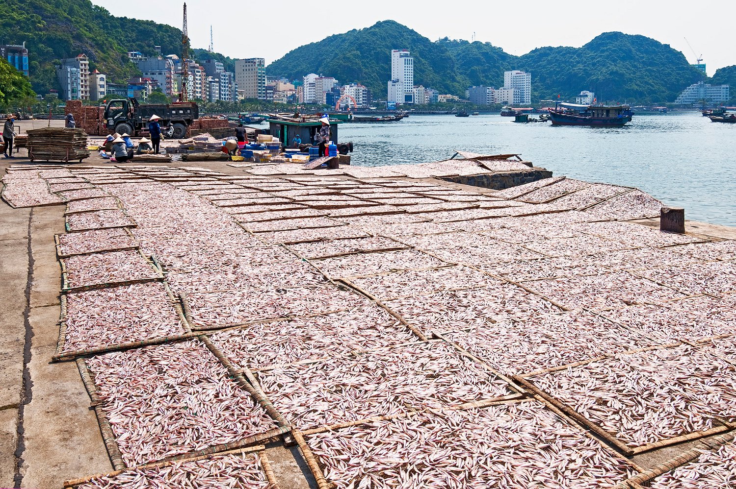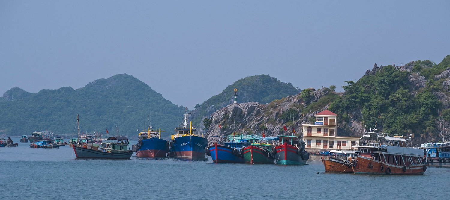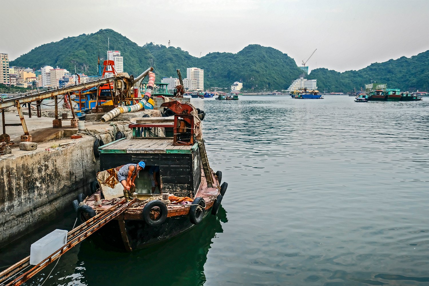 Le port de Cat Ba occupe une grande partie de la baie. On y trouve des habitats flottants de pêcheurs au milieu de bateaux de pêche traditionnels ou industriels. Des fabriques de nuoc mân occupent une partie des quais et des bâtiments.