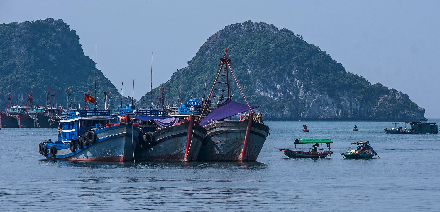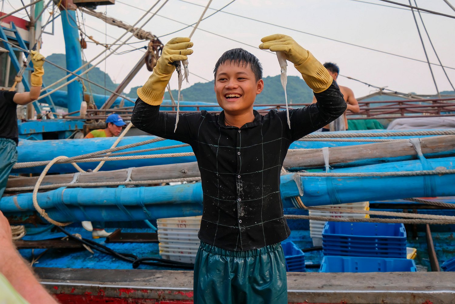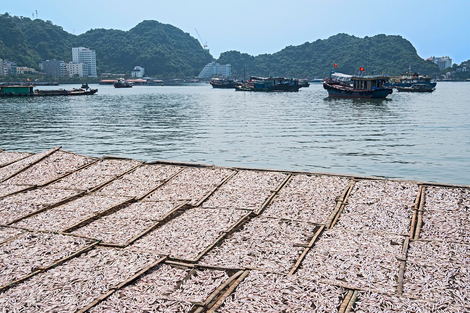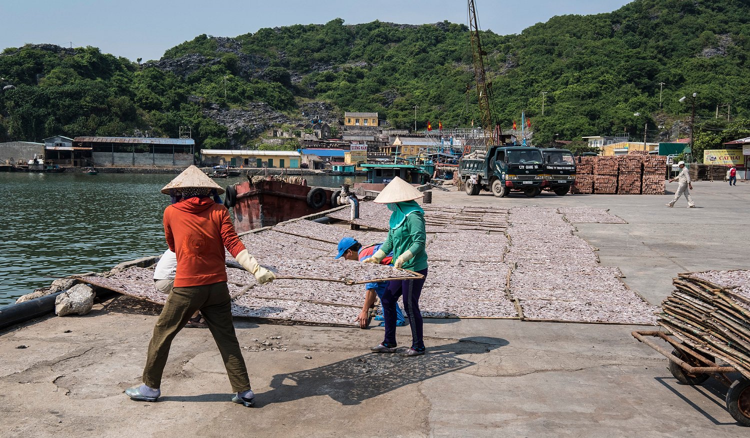 Le port de Cat Ba occupe une grande partie de la baie. On y trouve des habitats flottants de pêcheurs au milieu de bateaux de pêche traditionnels ou industriels. Des fabriques de nuoc mân occupent une partie des quais et des bâtiments.