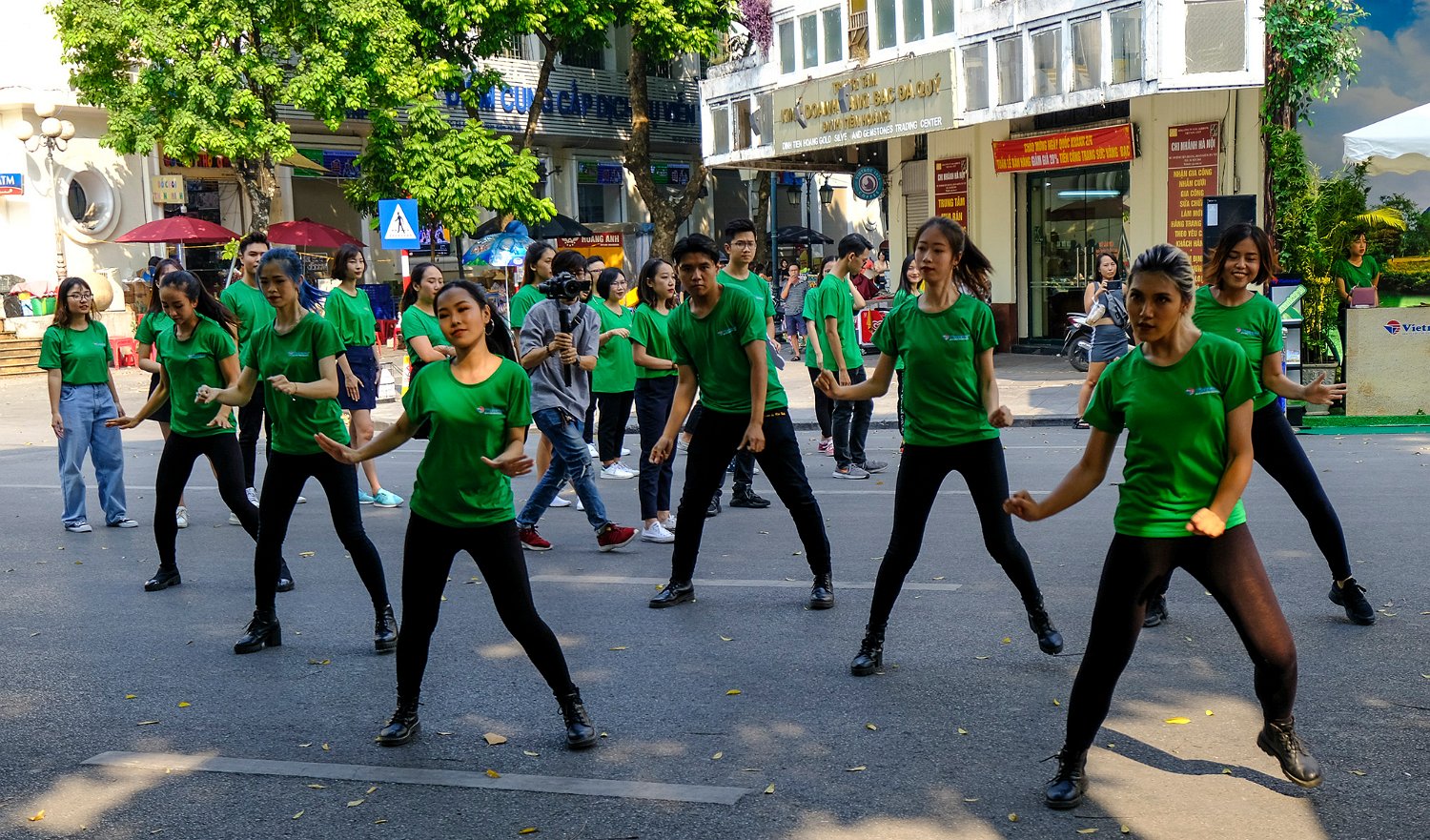 Groupe de jeunes danseurs animant les rives du lac le WE