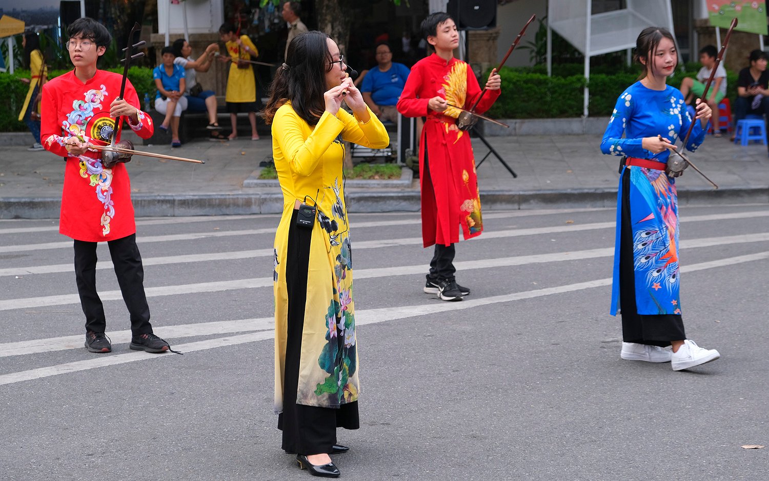 Groupe de jeunes musiciens animant les rives du lac le WE