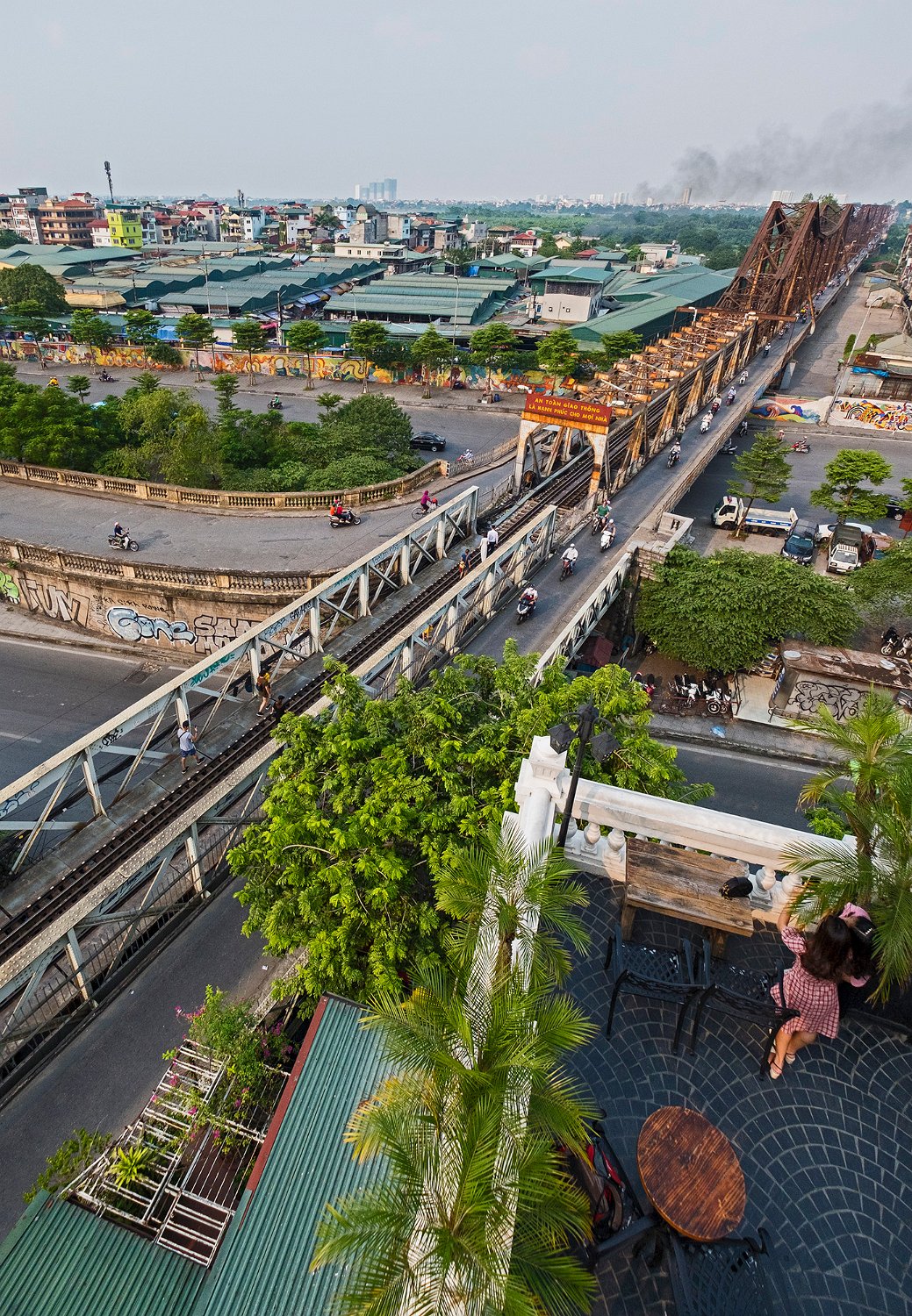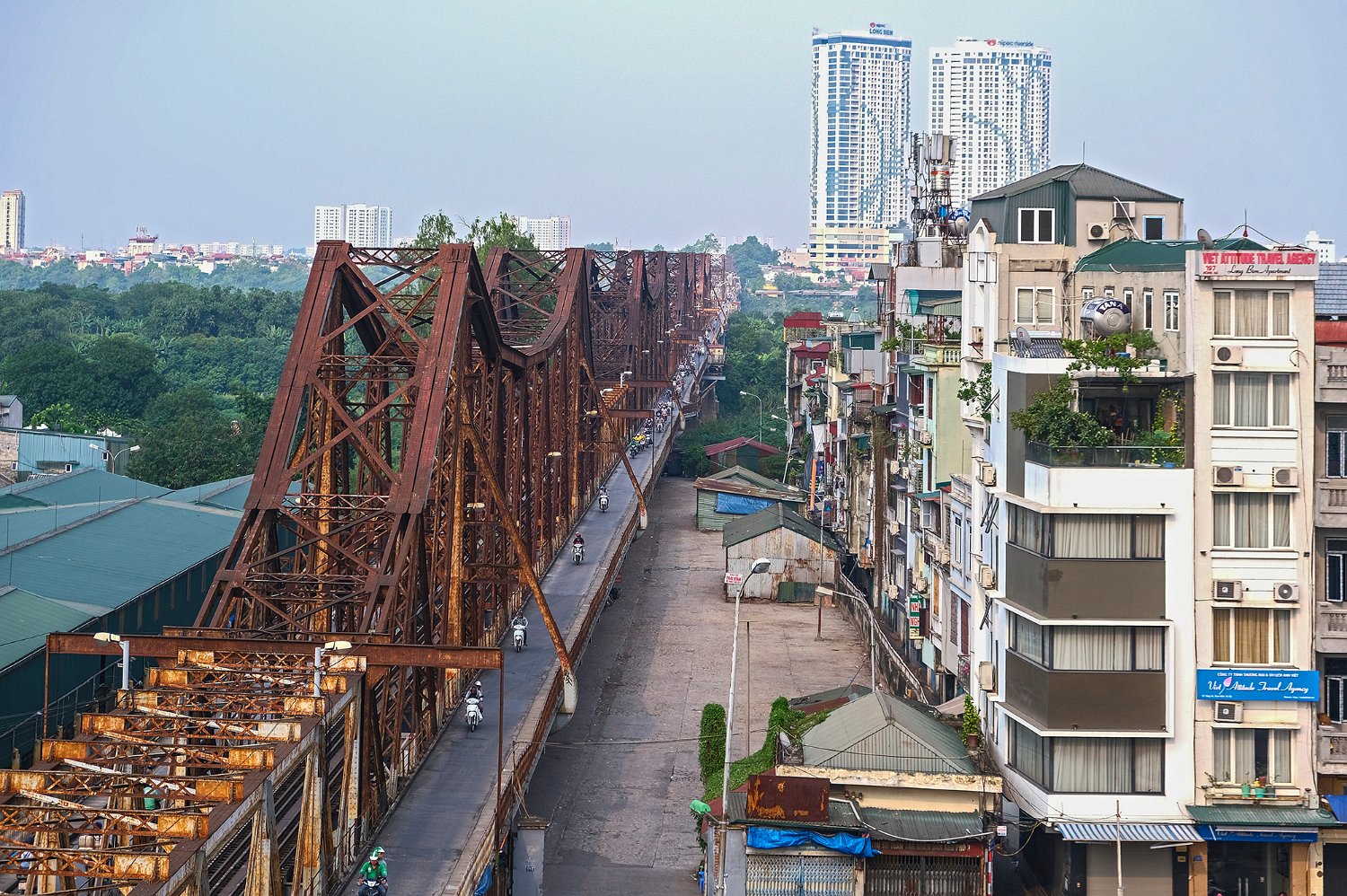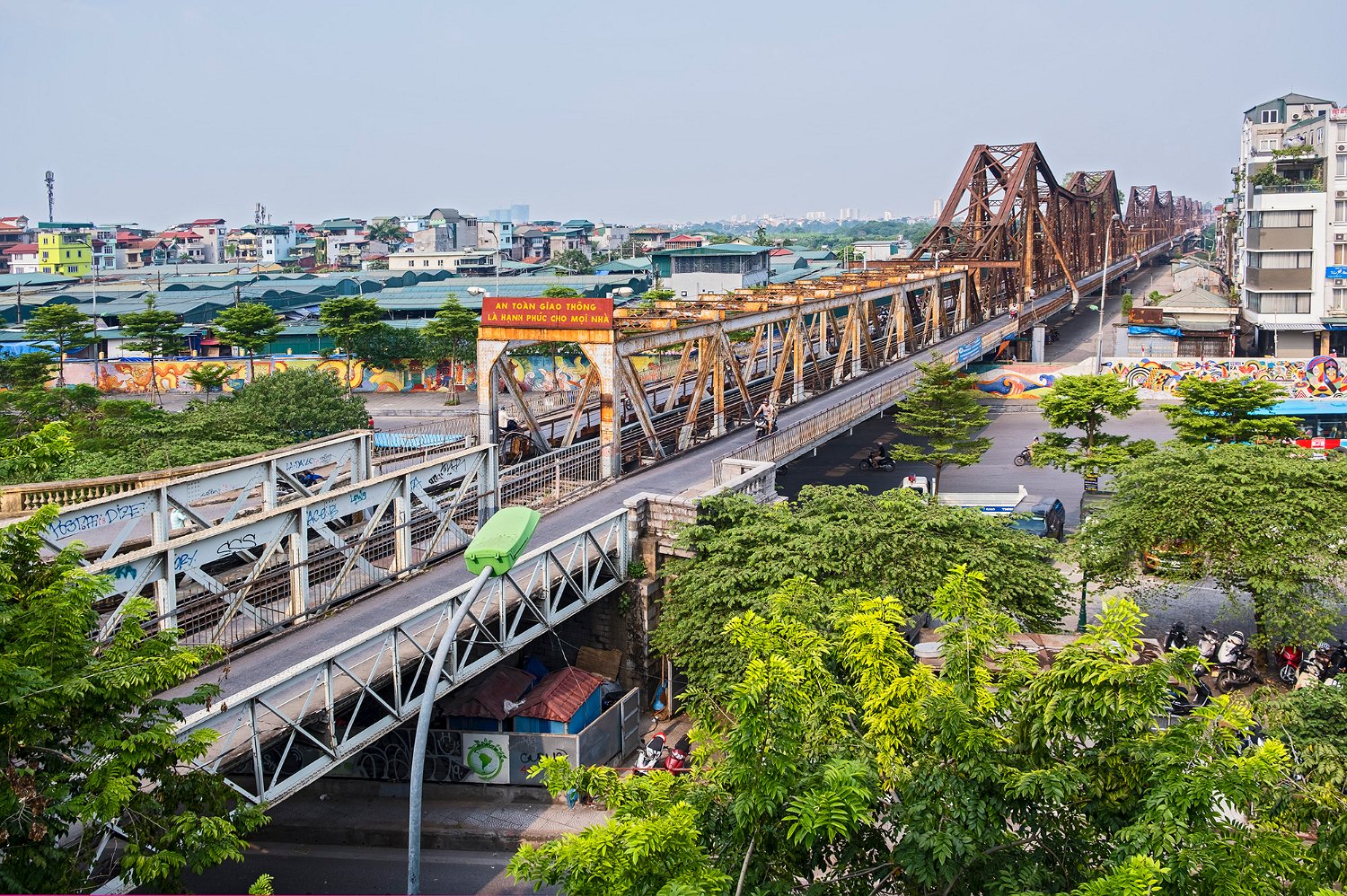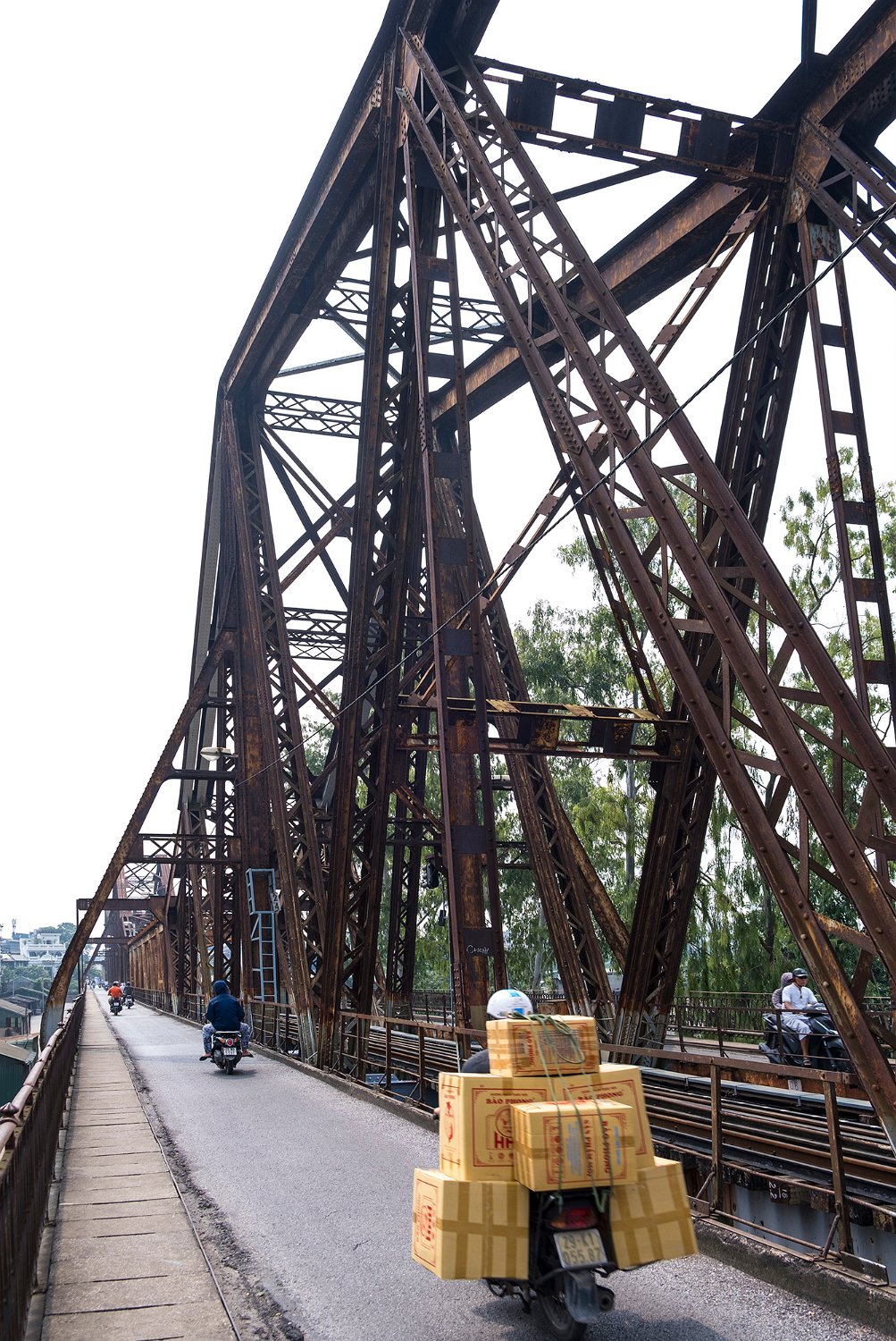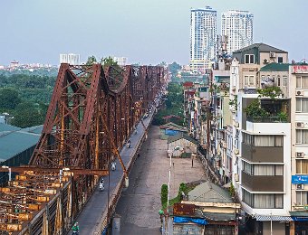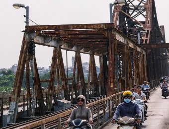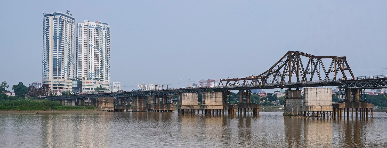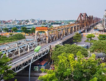 Construit à partir de 1889 sous l'impulsion de Paul Doumer gouverneur de l'Indochine par l'entreprise Daydé et Pillé. Long de 1680m répartis sur 19 travées, le pont Long Biên enjambe le fleuve Rouge. Il est très fréquenté par les piétons, les cyclistes et les motos.