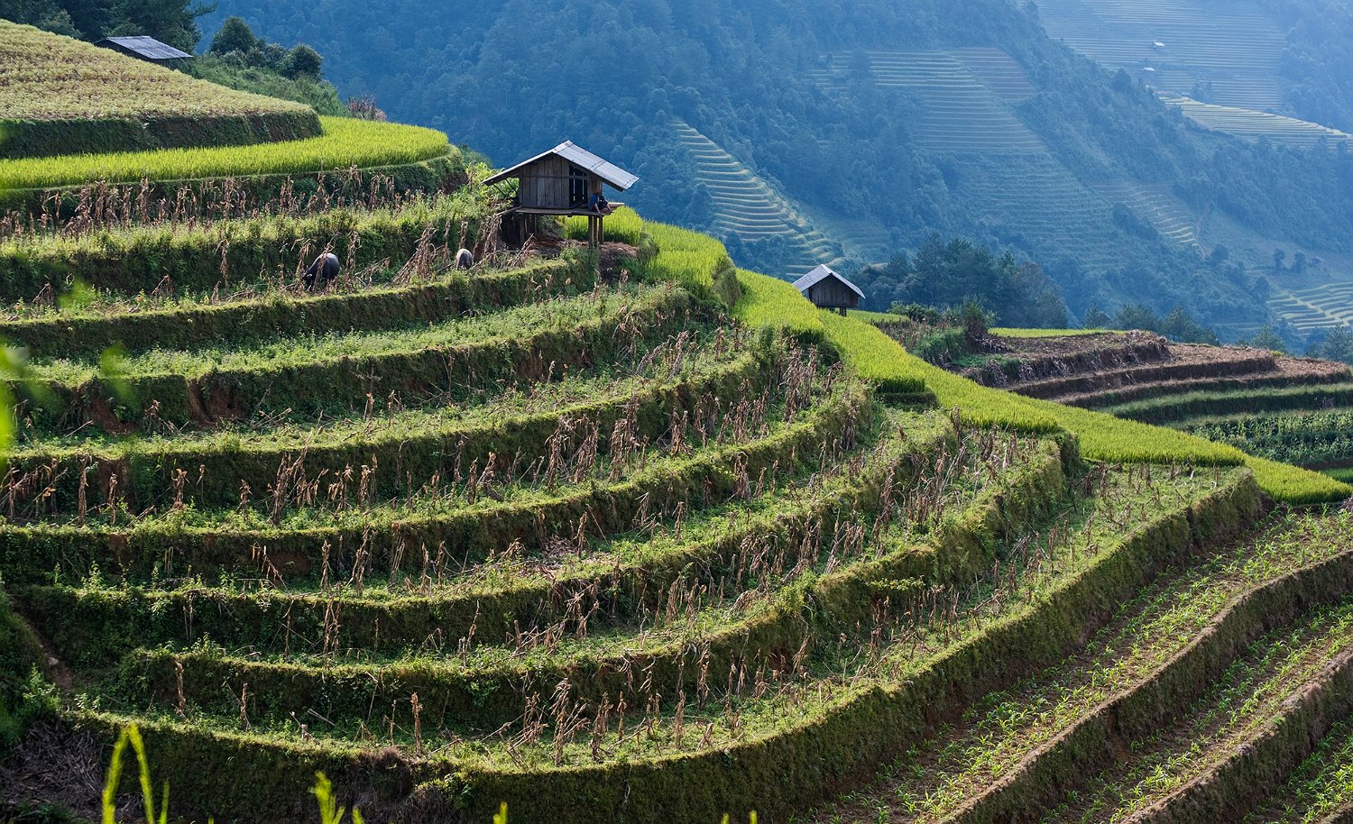 Mu Cang Chai est un district montagneux de la province de Yen Bai situé à environ 280 km au Nord de Hanoï. Cette zone géographique est renommée pour ses magnifiques paysages de rizières en terrasses et ses villages H'mong. Les H'mong sont une des ethnies présentes au nord du Vietnam. Ils représentent 90% de la population du district. Les rizières s'étendent sur 3 communes du district : La Pán Tẩn, Chế Cu Nha et Dế Xu Phình. E 2007, elles ont été reconnues paysage national du Vietnam.