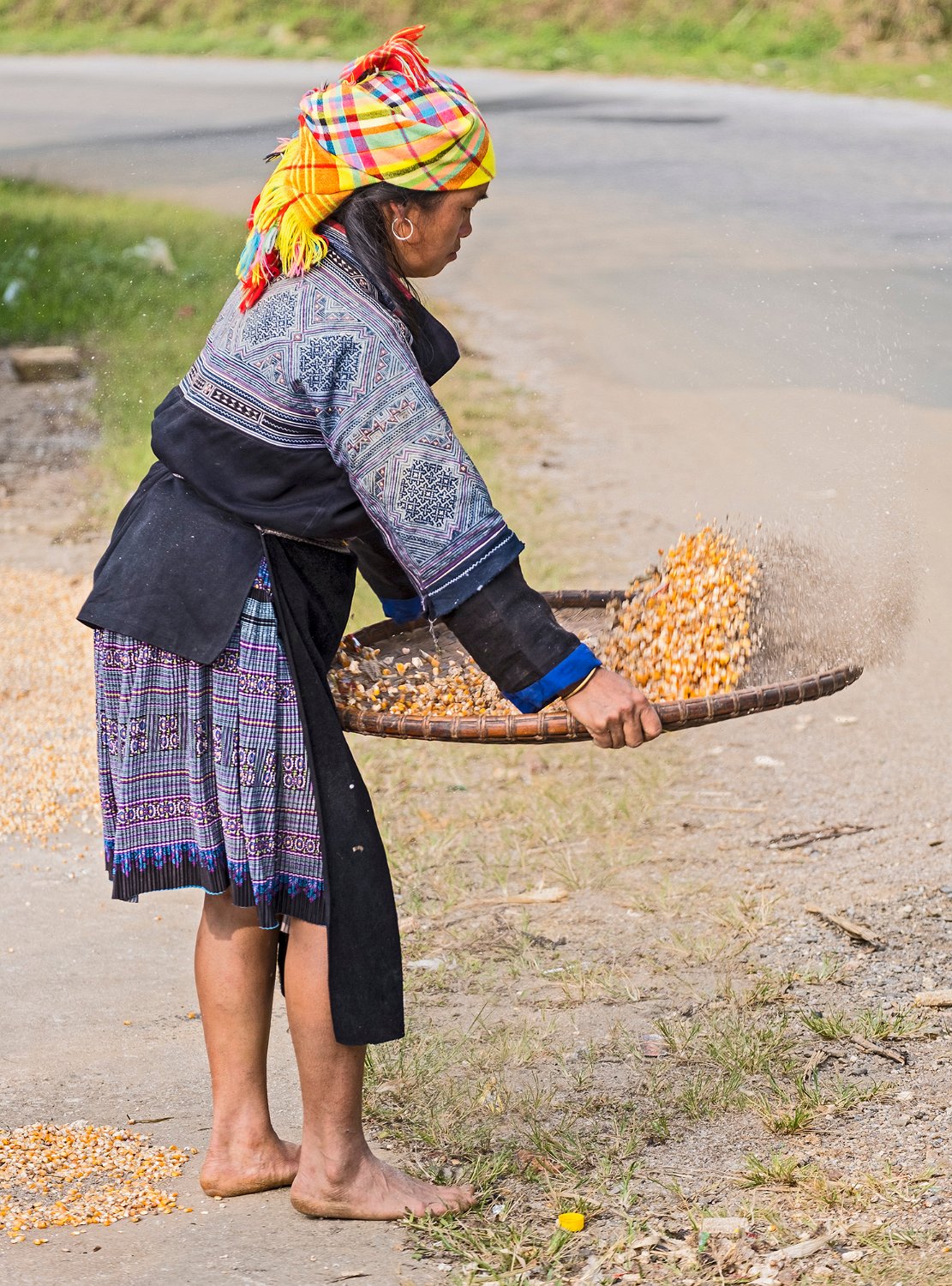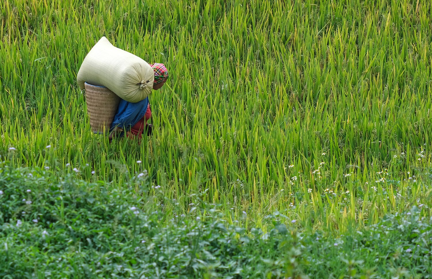 Paysanne transportant un sac de riz